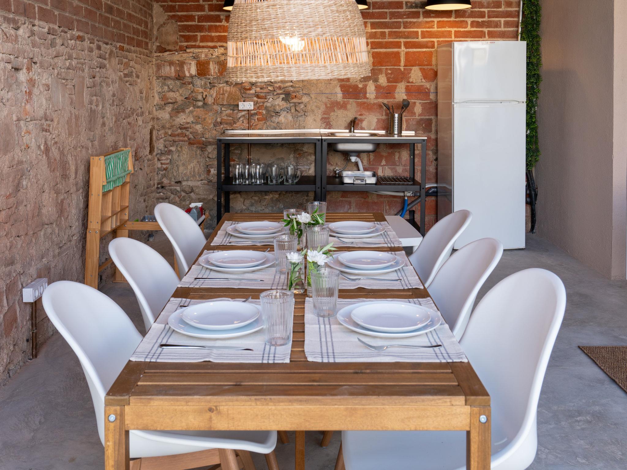 Beautiful, comfortable terraced house. Excellent location: right in the centre but still quiet, 160 m from the sea, from the beach. Private: garden (fenced) with lawn, swimming pool (7 x 3 m, depth 150 - 120 cm, seasonal availability: 01.Jan. - 31.Dec.). Shower/WC in the pool area, barbecue, roofed, parking. E-charging station. Shop 80 m, supermarket 350 m, restaurant 150 m, bakery 300 m, bus stop "Escoles - Sant Esteve" 200 m, railway station "Malgrat de Mar" 240 m. Nearby attractions: Barcelona 66 km, Mataro 35 km, Sant Pol 20 km, Lloret de Mar 12 km. The owner does not accept any youth groups. Neighbourhood highly sensitive to noise. Quietness and good behaviour expected.