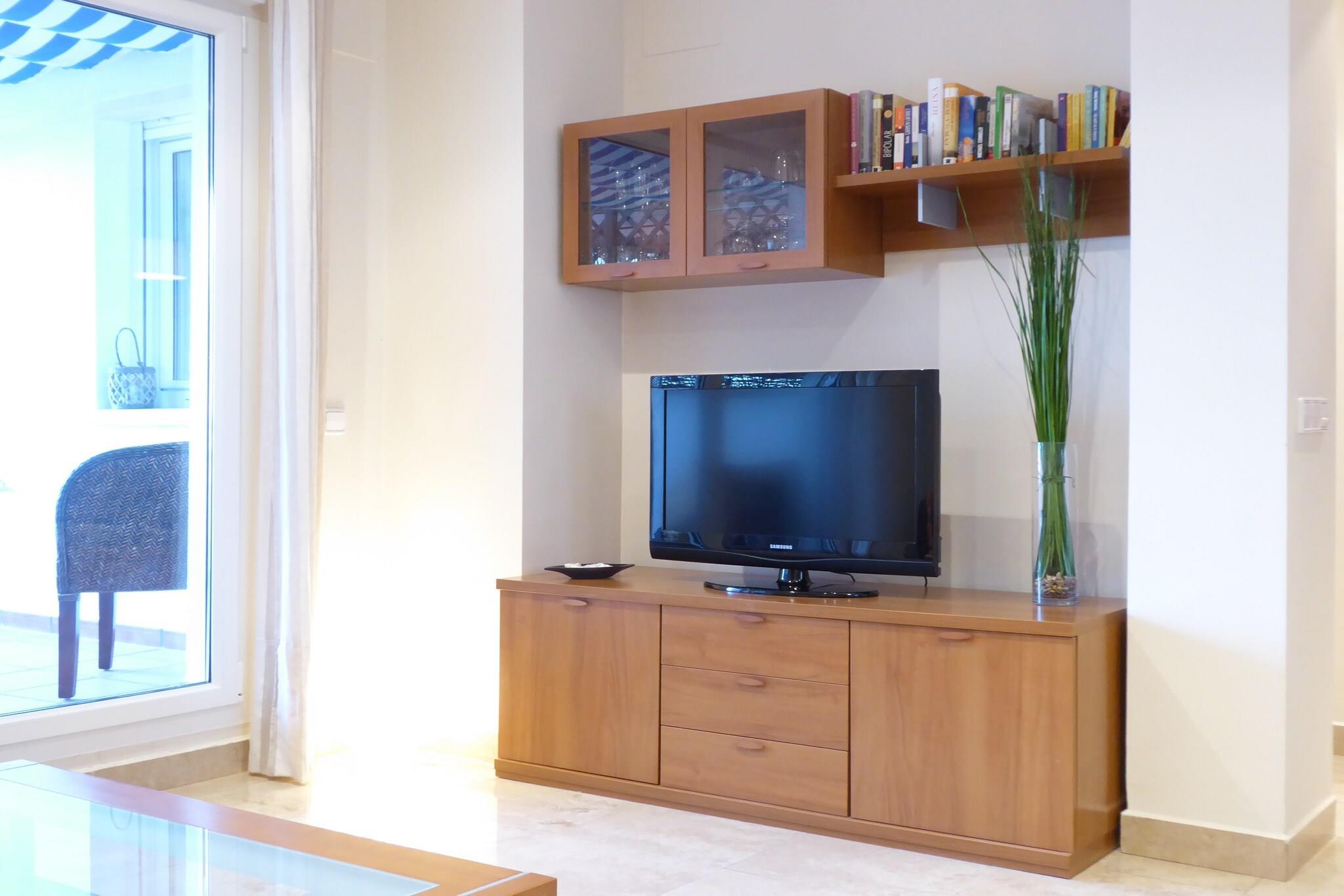 This beautiful apartment is located in Alcorrín. Ideal for a family, it can accommodate 5 guests and has 2 bedrooms. This fully equipped apartment has a shared swimming pool to relax and enjoy.The apartment is located only 4 km from the golf course. The nearest supermarket is 1 km for your hustle-free stay. If you wish to spend a day by the bay, the sea is only 4 km away. Try the local delicacies at the close by restaurants just 4 km from the stay. The town of Castillo La Duquesa is 5 km away.This child-friendly property provides a cot on request for the tiny travelers. There are 3 private terraces that offers some outdoor time with your family. Keeping your comfort in mind, heating and air conditioning are installed in the apartment. Parking is available for the guests. This home allows only 1 pet to stay at a time. The nearest airport in Gibraltar is 35 km away.Guests can check in between 4-6 PM and check out is from 8-10 AM.
