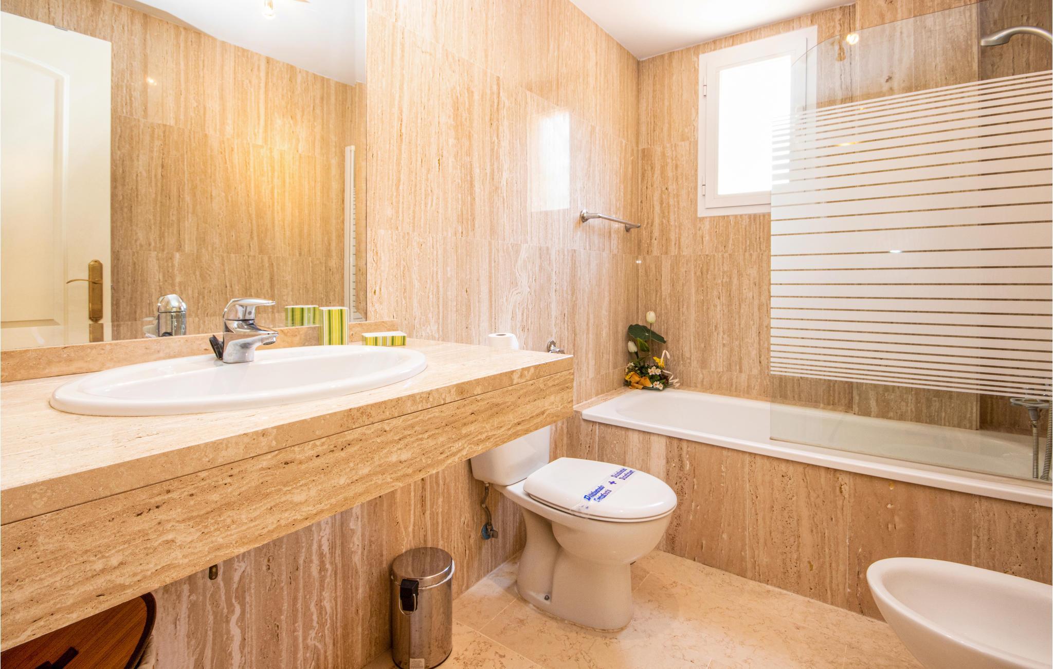 Badezimmer (nr. 1) - WC. Warmes und kaltes Wasser. Dusche und Badewanne