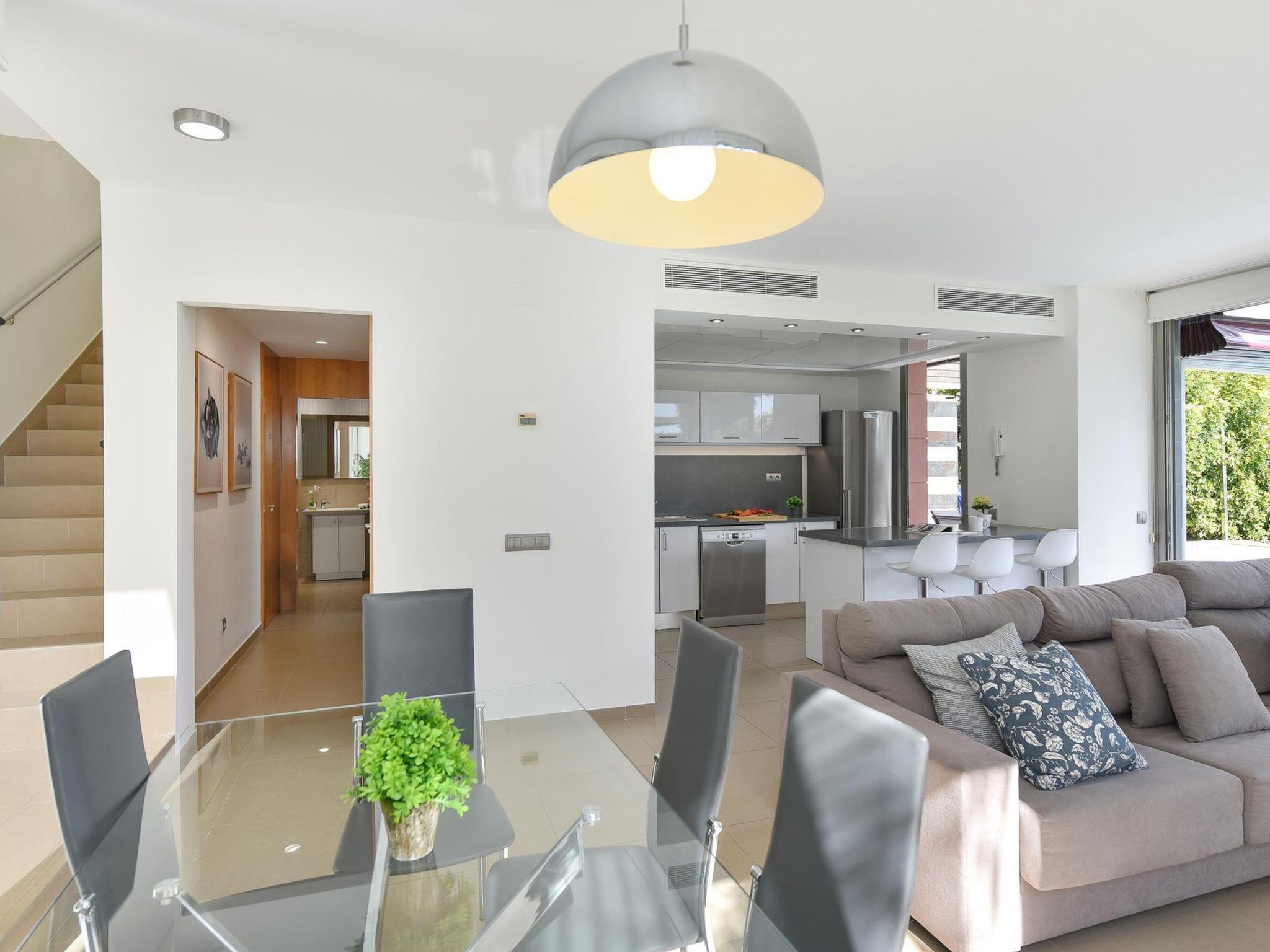 "Los Dragos 13", 3-room house 120 m2. Comfortable and modern furnishings: living/dining room with dining table, digital TV and air conditioning. Exit to the patio. 1 room with 1 french bed, shower/WC and air conditioning. Exit to the patio. Open kitchen (oven, dishwasher, 1 ceramic glass hob hotplate, toaster, kettle, microwave, freezer, electric coffee machine). Upper floor: 1 room with 1 french bed, shower/bidet/WC and air conditioning. Exit to the balcony. Patio. Terrace furniture, balcony furniture, deck chairs. View of the countryside. Facilities: washing machine, safe, iron, children's high chair, baby cot for up to 2 year olds, hair dryer. Internet (WiFi, free). Parking (1 car). Please note: non-smoking house. Maximum 1 pet/ dog allowed. 2022-T13112 // Reg. Nr.: ESFCTU0000350120004893540000000000000VV-35-1-00182294
