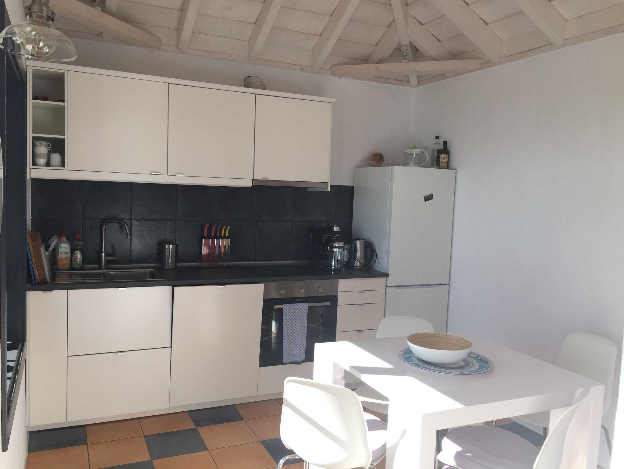 Das 2018 vollständig sanierte Haus beherbergt auf 70 Quadratmetern eine nagelneue Küche mit Meerblick, ein Wohnzimmer mit Meerblick und Schlafcouch, ein Schlafzimmer mit auch einzeln stellbarem Doppelbett und ein Badezimmer mit Dusche und WC. Das Wohnzimmer ist gemütlich und modern möbliert. Im Winter sorgt ein Kamin für angenehme Temperaturen im Haus. Der neu errichtete kanarische Dachstuhl wurde weiß lasiert, so dass dieses Haus besonders hell und freundlich erscheint.