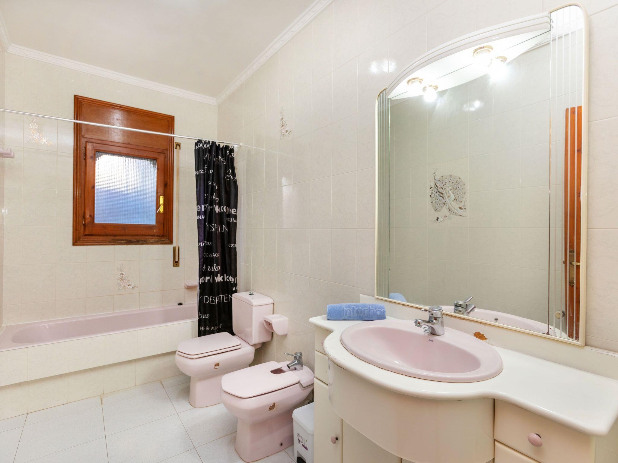 "Masboquera", 4-room villa 95 m2, on the ground floor. Practical and comfortable furnishings: living/dining room with open-hearth fireplace, dining table, satellite TV and digital TV. Walk-through room with air conditioning. 3 rooms, each room with 2 beds. Kitchen (4 hot plates, oven, dishwasher, toaster, kettle, electric coffee machine). Bath/WC, bath/bidet/WC. (100 litres). No heating option. Terrace, garden, lawn. Terrace furniture, barbecue (portable). Facilities: washing machine, iron, hair dryer. Internet (WiFi, free). Suitable for families. HUTT-010082 // Reg. Nr.: ESFCTU00004303200026860400000000000000000HUTT-0100825