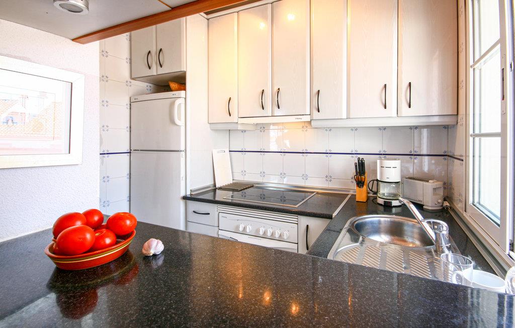 Das helle Apartment besteht aus einem geräumigen Wohn-Esszimmer mit Zugang zu einer sonnigen Terrasse. Im Schlafzimmer befindet sich ein Doppelbett mit Einbauschränken und eine extra Matratze. Die Küche ist komplett ausgestattet.