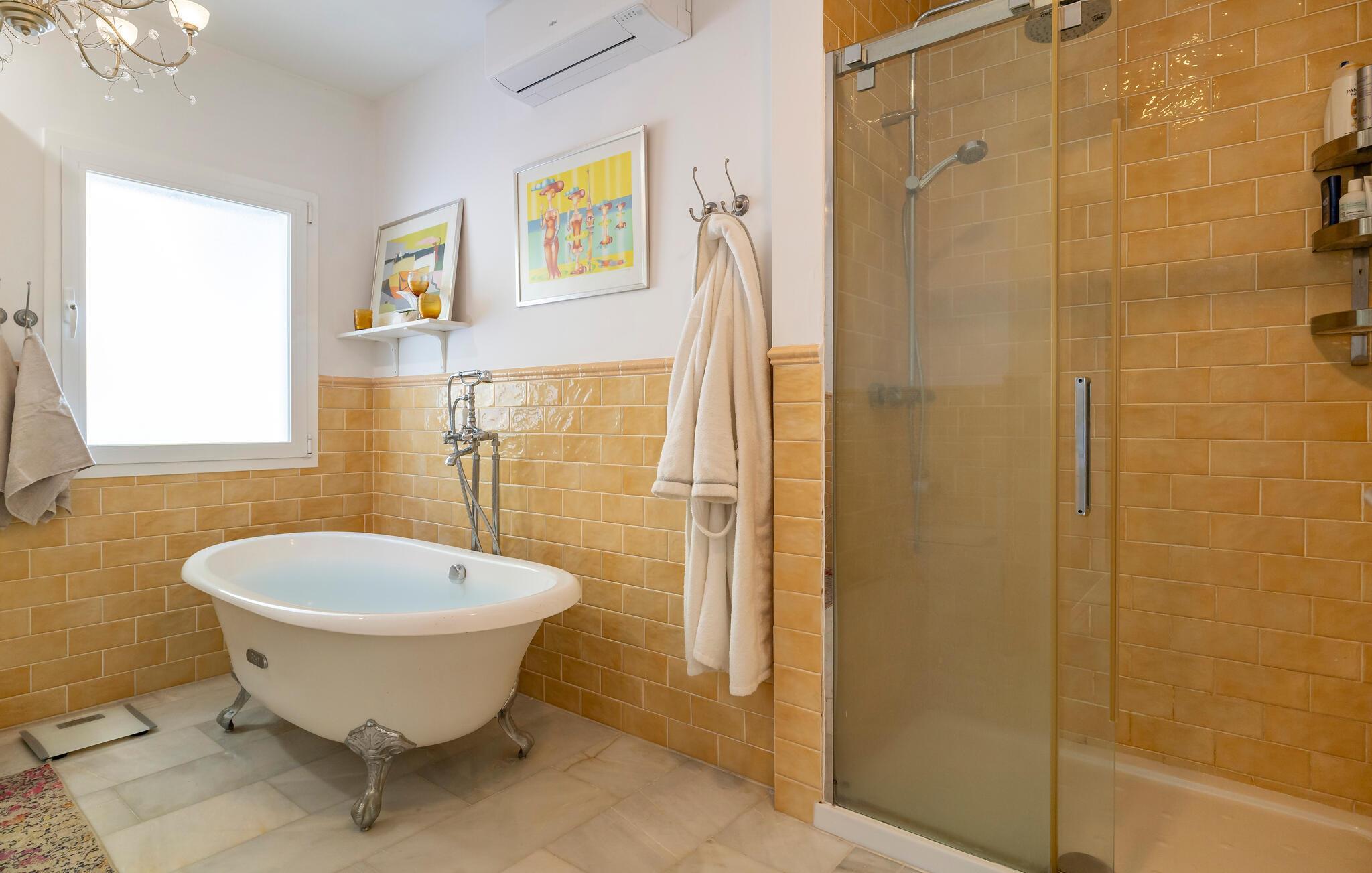 Badezimmer 14m2 (nr. 1) - WC. Warmes und kaltes Wasser. Handdusche und Badewanne