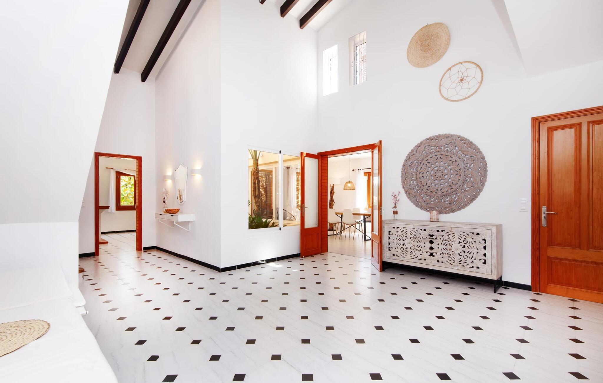 Sie betreten die Villa durch eine massive, große Holztür. Die gefliesten Böden, Holzfensterrahmen und Terrassentüren sowie die moderne und farbenfrohe Einrichtung sorgen für eine unnachahmliche Atmosphäre und das richtige Wohlfühlgefühl, das nicht nur in der Lounge mit den bequemen Sofas, sondern auch im Kachelkamin zu finden ist . Auch die drei großen Doppelzimmer, die übrigens ab 2021 über eine Klimaanlage verfügen, bestechen durch ihren individuellen Charme und zeitgemäßes Design. Einer davon hat direkten Zugang zu einer der umliegenden Terrassen. In der gesamten Villa gibt es Holzdetails wie den großen Esstisch mit Holzstühlen im Vintage-Stil. Die Küche ist ein wunderbarer Ort, an dem Sie abends gemeinsam mit frischen Produkten aus der Region kochen können. Es verfügt über eine weiße Hochglanzküche, einen Esstisch (natürlich gibt es auch ein Esszimmer!), eine Spülmaschine und vieles mehr sowie alle Annehmlichkeiten, die Sie für einen Selbstversorger-Urlaub benötigen. Die beiden Bäder mit großzügiger Dusche sind besonders stilvoll und hell eingerichtet. Sie verfügen außerdem über hölzerne Einrichtungsgegenstände, die zum eleganten Innendesign der gesamten Villa passen. In diesem atemberaubenden Haus erwartet Sie eine originelle Struktur mit zeitgenössischen und Vintage-Stilelementen, die Ihnen bei jedem Wetter einen komfortablen Ort bietet, an dem Sie Ihren gemeinsamen Urlaub verbringen können.