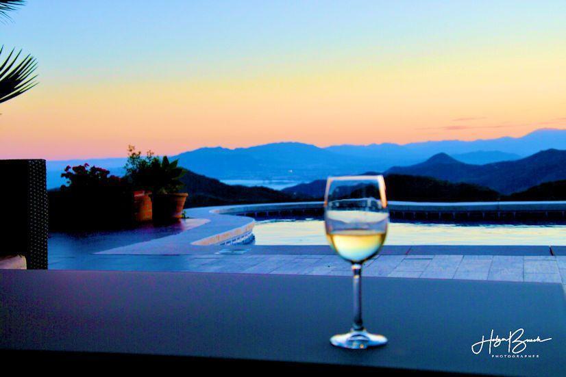Inside, guests can expect top furnishings that leave nothing to be desired. The spacious living room with a cosy corner sofa by the fireplace invites you to relax while you enjoy the view or enjoy the wide range of entertainment, consisting of German TV, music, CD, DVD, MP3 player, I-Pod connection, Apple TV and a soundbar. The open-plan kitchen adjoins the dining room, which is furnished with a large wooden table for up to 12 people, but where outdoor dining is usually favoured, accompanied by enchanting views of the Mediterranean and the surrounding countryside. Comfort is also provided by the two bedrooms, each with en-suite bathrooms and beds from which you can enjoy breathtaking views of the sea and the countryside.