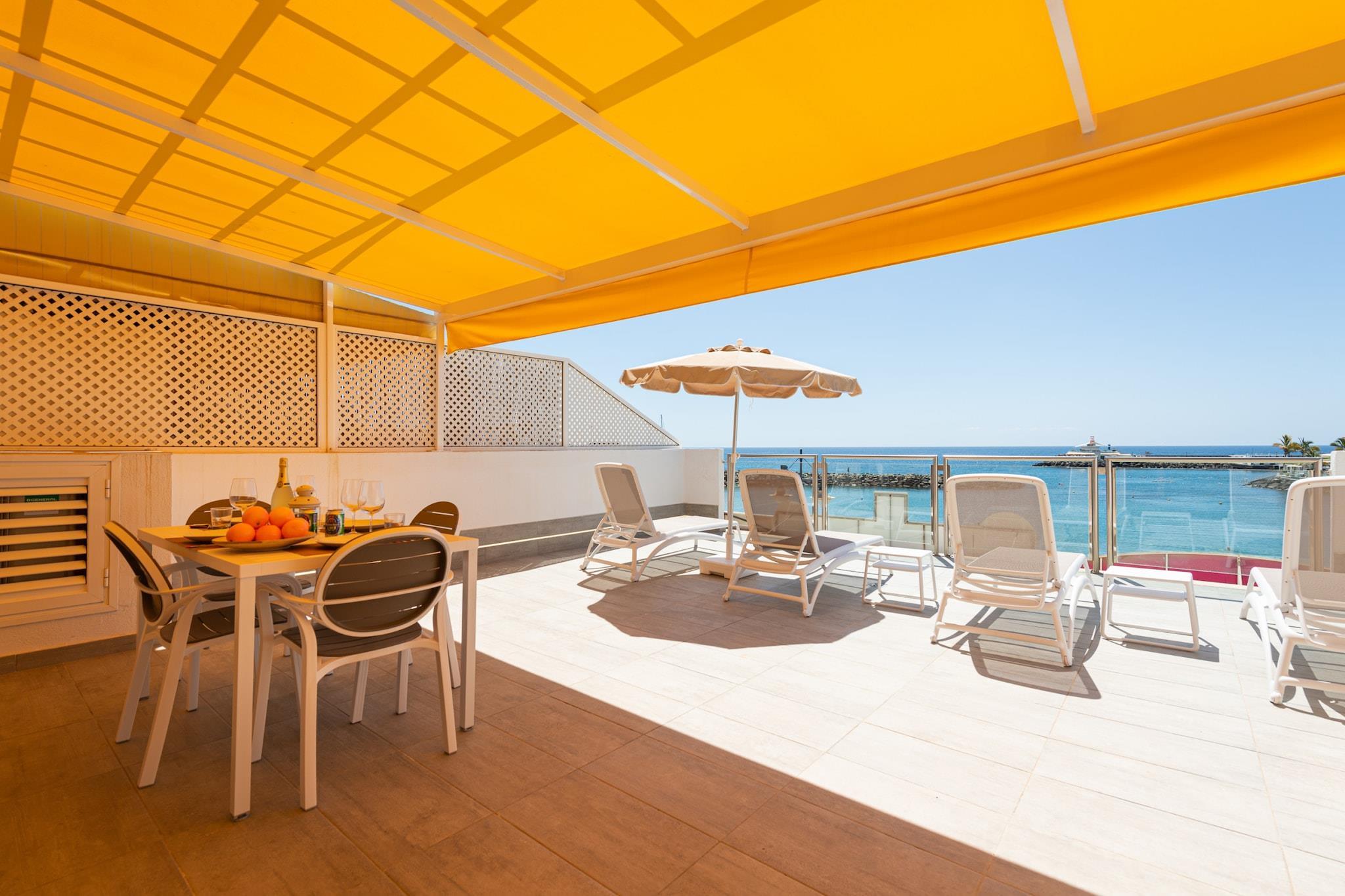 Experience a remarkable beachfront apartment, where you can witness breathtaking sunrises and sunsets while enjoying high-speed unlimited Wi-Fi of 300 Mbps. Located in the serene Playa de Mogán, this apartment is situated within a quiet residential building and features top-quality materials and finishes. The expansive terrace offers spectacular sea views, sun loungers, and a comfortable seating area, providing the perfect setting for relaxation. This contemporary apartment is thoughtfully designed for your comfort, featuring a private terrace with outdoor dining, an equipped kitchen, and a cozy living room with sofas and a Smart TV that includes international channels, covering sports from Spain, the UK, Germany, and more. The accommodation includes a bedroom with a double bed, ceiling fan, and direct terrace access, as well as a second bedroom with two single beds, both equipped with air conditioning and ceiling fans. A modern bathroom with a shower completes the space. With the apartment’s ideal indoor and outdoor spaces, you can enjoy your stay year-round, complemented by stunning views of the beach. For families, a cot and high chair are available upon request. The property is located in a residential area, ensuring tranquility for all guests, with parking available in front of the building at an additional cost. You’ll be just 100 meters from the beach, restaurants, and shops, with golf courses and shopping centers a short drive away, making it an ideal base for exploring the beauty of Gran Canaria. Book your unforgettable getaway now!