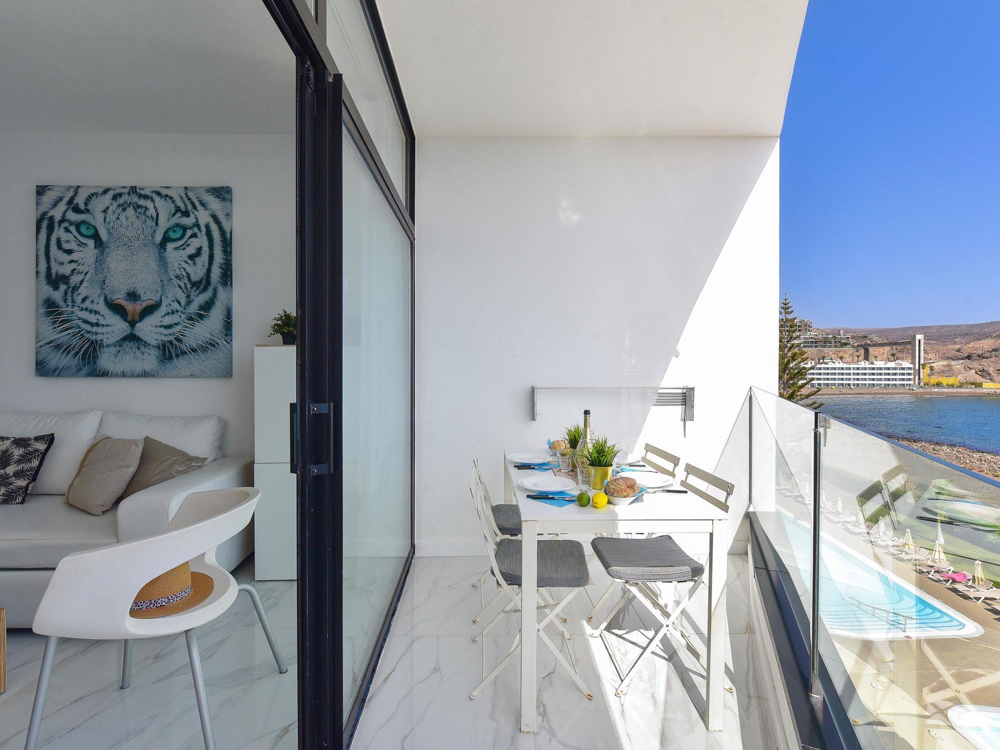 "Playa del Cura 4", 2-room apartment 48 m2 on 4th floor. Object suitable for 2 adults. Simple and comfortable furnishings: living room with TV, flat screen and air conditioning. Exit to the balcony. 1 room with 2 beds (90 cm, length 90 cm). Open kitchen (oven, dishwasher, 4 ceramic glass hob hotplates, toaster, kettle, microwave, freezer, electric coffee machine). Bath/WC. Marvellous panoramic view of the sea. Facilities: washing machine, dryer, children's high chair, baby cot for up to 2 year olds, hair dryer. Internet (WiFi, free). Please note: non-smokers only. 2024-T16644 // Reg. Nr.: ESFCTU0000350210001999720000000000000VV-35-1-00237165