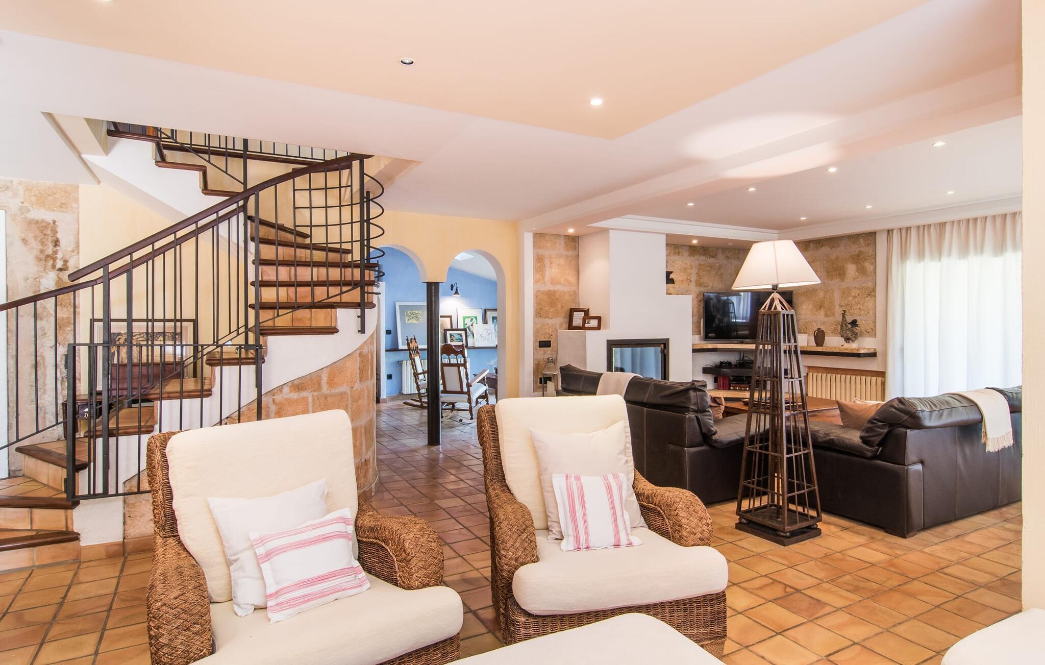 Die perfekte Symbiose aus typisch mallorquinischem und fröhlichem Design, bestehend aus erstklassigem dunklem Holz- und Drechselhandwerk und terrakottafarbenen Fliesen mit modernen Designelementen. Das ist es, was „Moliner Almadrava“ auszeichnet... Dieses Design bietet eine Lösung zwischen dem ehrwürdigen und geschätzten „alten“ Mallorca und den Ansprüchen des modernen Designs. Die freigelegten Bruchsteine, die in ihrer Grobheit nahezu unbearbeitet wirken, versprühen einen majestätischen und fast industriellen Charme. Diese Details wiederholen sich in verschiedenen Wohnräumen wie den Badezimmern und dem Wohnzimmer. Sie können sich auf einen bequemen Sitzplatz verlassen – egal, ob Sie fernsehen oder lieber den Blick in den knisternden Kaminofen schweifen lassen. Zwei Essbereiche im Haus bieten den idealen Urlaubsrahmen für kältere Tage, um die frisch zubereiteten Speisen in der trendigen Küche mit Kochinsel und erstklassiger Ausstattung zu genießen. Auch Kulturliebhaber kommen auf ihre Kosten – Klavierecke und Bibliothek dienen nicht nur dekorativen Zwecken. Der Lesesaal wird sicherlich einer der vielen Lieblingsorte sein, die diese Villa zu bieten hat. Drei der insgesamt vier Doppelzimmer, die erholsame Nächte garantieren, befinden sich im Dachgeschoss. Auch die „Schlafzimmer für die Eltern“ verfügen über schöne En-Suite-Badezimmer. Aber auch die anderen Gäste werden mit zwei zusätzlichen komplett ausgestatteten Badezimmern garantiert zufrieden sein. Es gibt kaum bessere Voraussetzungen für einen stressfreien Urlaub.