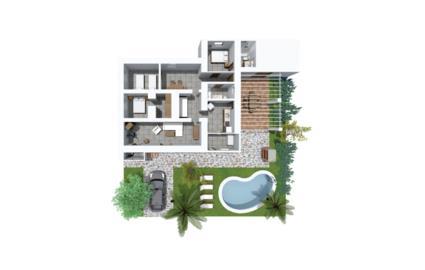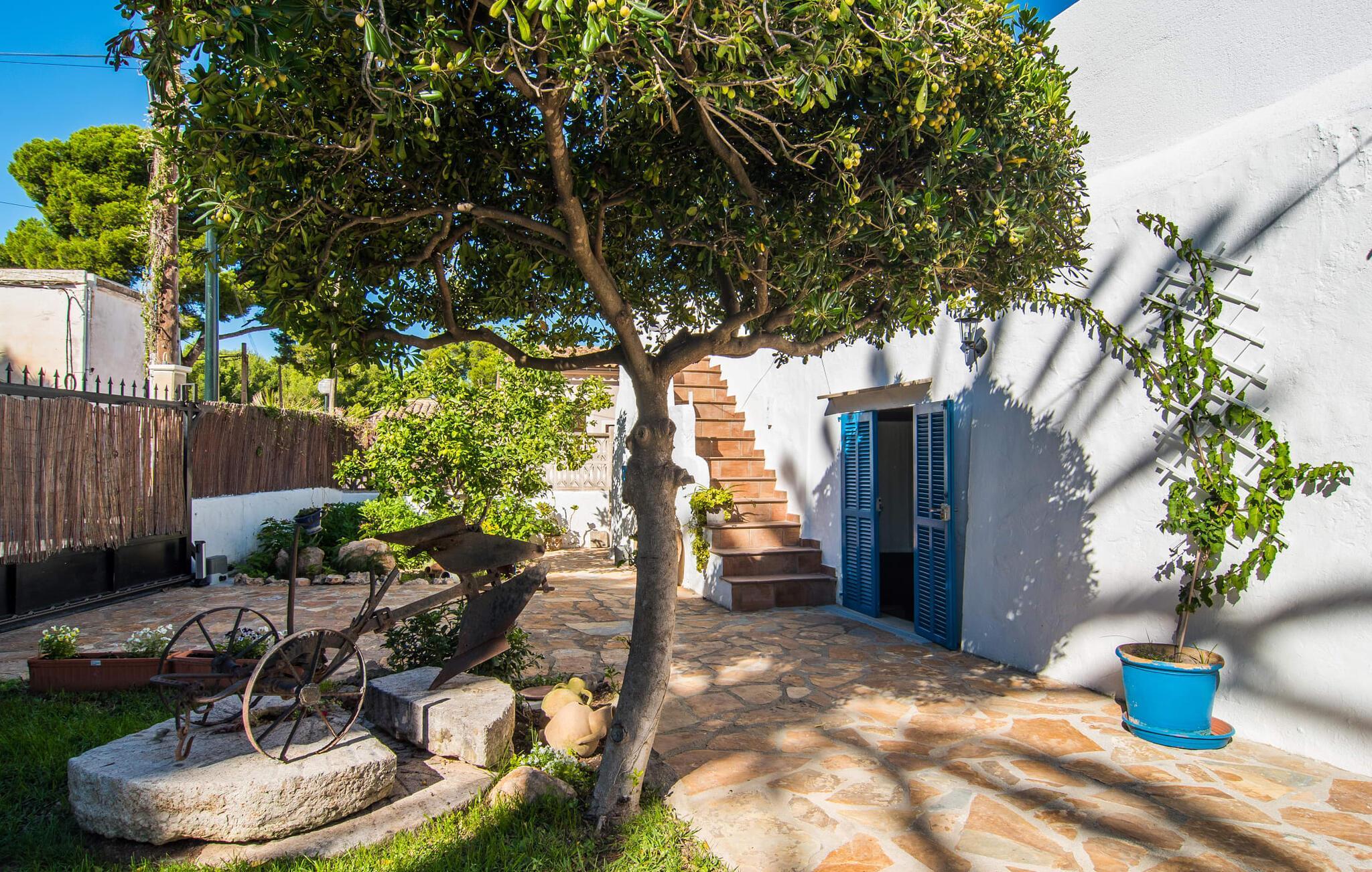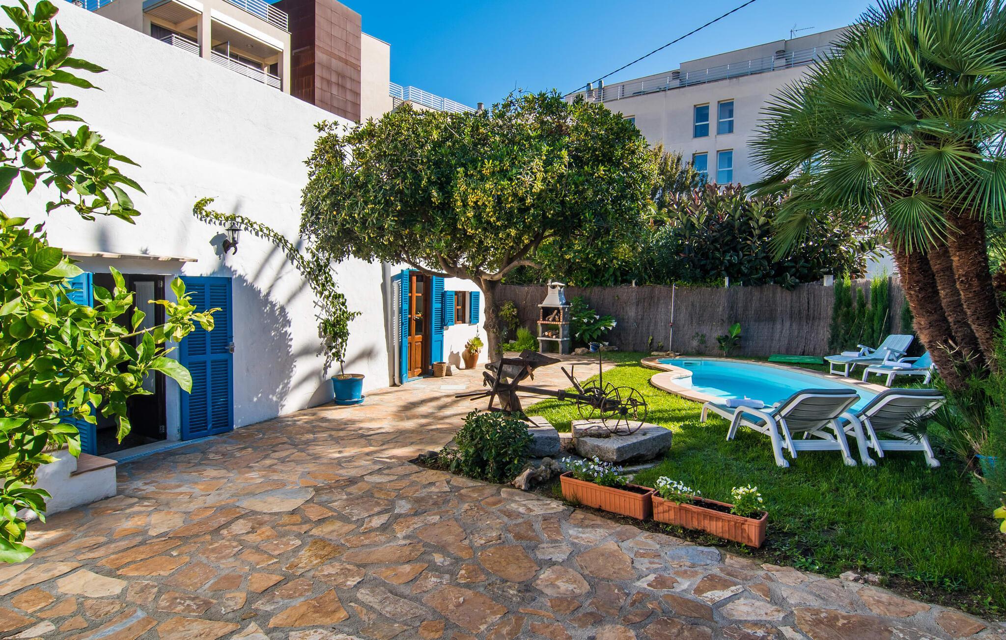 Bei der Villa „Molino de Son Moll“ erkennt man auf den ersten Blick, dass es sich um ein wirklich außergewöhnliches Haus handelt. Das ibizenkisch weiß gestrichene Haus mit türkisfarbenen Fensterläden verfügt sogar – wie der Name schon verrät – über einen alten Windmühlenturm, der auch seinen ursprünglichen Zweck als landwirtschaftliches Anwesen verrät. Getreu seiner mallorquinischen Tradition ist das charmante Stadthaus von einigen liebevollen kleinen Details umgeben, die wir gerne mit Ihnen teilen möchten: zum Beispiel dem privaten, nierenförmigen Pool (obwohl das Meer nur einen Steinwurf entfernt ist), der ist in Rasen und Terrasse integriert. Nach dem Schwimmen können Sie sich draußen abduschen, bevor Sie sich auf einer der bereitgestellten Sonnenliegen ausruhen oder es sich mit der Lektüre Ihres neuesten Lieblingsbuchs gemütlich machen. Dies ist besonders angenehm zwischen Palmen, Zypressen, Johannisbrotbäumen und anderen typisch mediterranen Pflanzen. Auf der kühlen Dachterrasse kann man sich nicht nur zurücklehnen, während man nachts auf das beleuchtete Resort blickt. Der Essbereich im Freien und die arabisch anmutende Loungezone, beide überdacht, sind sicherlich nicht weniger reizvoll: halb von Wänden umgeben, halb bedeckt von einer Markise oder Laken, die in der sanften Brise wehen. Trotz der zweifellos urbanen Lage inmitten eines Wohnviertels genießen Sie dennoch Ihre Privatsphäre in einer angenehmen Umgebung, die vor allem für ein sofortiges Entspannungsgefühl sorgt.