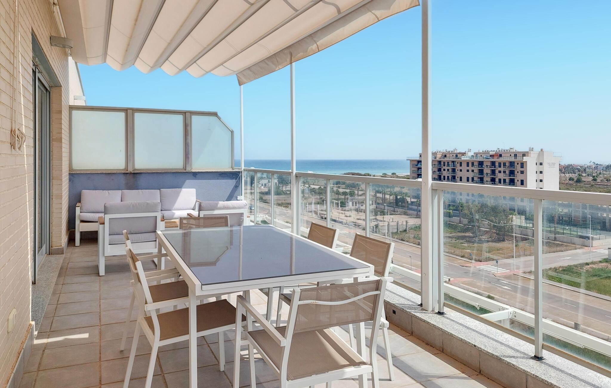 Ein besonderes Highlight ist die große Terrasse, auf der Sie sich nicht nur sonnen, den Rundumblick auf das Meer und die Landschaft genießen, sondern auch Ihre Mahlzeiten und sich auf den Balkonmöbeln entspannen können.