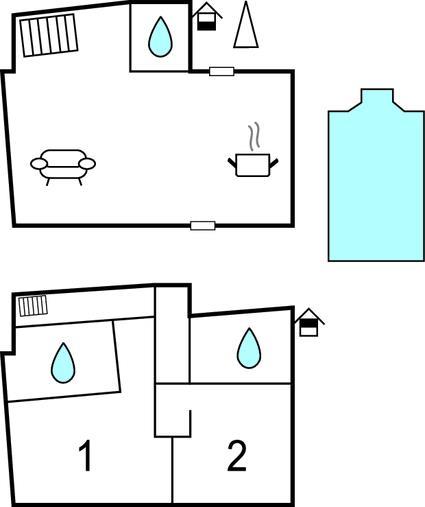 Badezimmer (nr. 1) - WC. Warmes und kaltes Wasser. Dusche