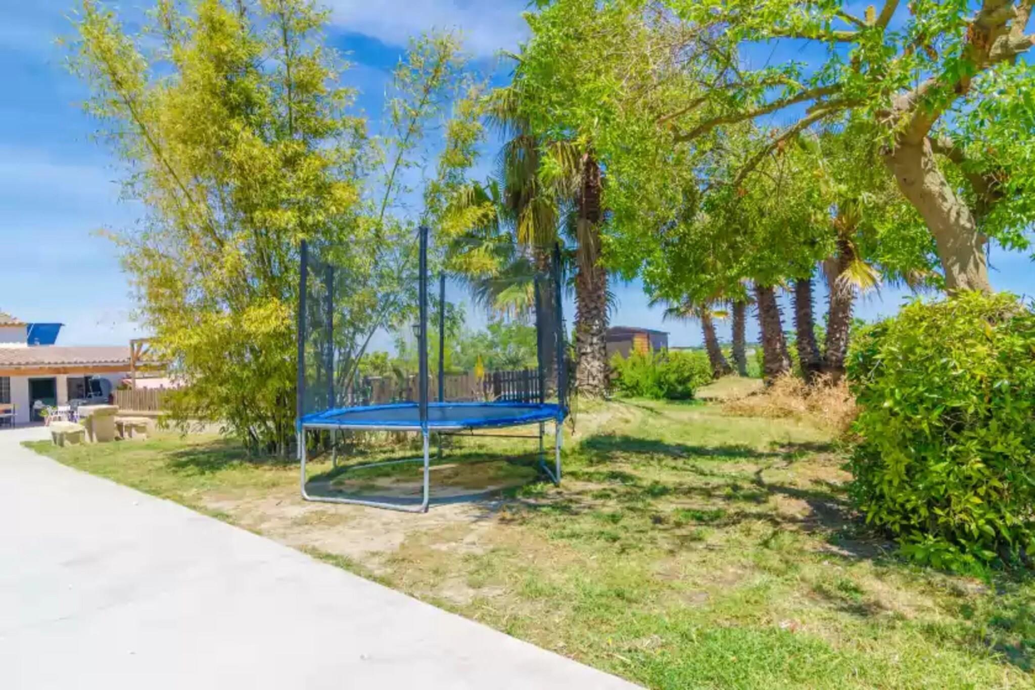 In this beautiful rustic but modern house you will enjoy the country atmosphere of the interior of Mallorca but being really close to everything. The really big impressive chlorine pool of 12 x 5 meters with a depth of 0.7 to 1.9 meters is surrounded by a beautiful terrace with several sun loungers for enjoying the sun. This part is fenced from the rest of the terrace. An ideal place for families with small children. Several tables and hammocks invite to relax close to the furnished area with sofas and old restored rockers from where to enjoy the sunset, and a rustic and original table in which to eat or dine outdoors the delicious dishes cooked in the barbecue that is to your provision. There's a ping-pong table, a basketball basket, a trampoline and a sauna for relaxing after practicing sports. The whole plot of 3400 m2 is completely fenced, and although there are some neighbors in the surroundings, you can enjoy your privacy. The whole house is distributed on one floor. From the magnificent porch you access directly to the interior of the house that unites in the same space living room and kitchen. The current rustic style continues in the interior, in a space with wooden beams and stone walls. This area has satellite TV, Wi-Fi connection and air conditioning. It has a dining table for six people that is located next to the kitchen area, which has ceramic hob and is equipped with everything you need for preparing excellent meals for your loved ones. It also has a table with four chairs to have breakfast comfortably. You will sleep in three bedrooms, all on the same level. Two have a double bed and the third has a single bed. All bedrooms have air conditioning, and all with wardrobes or dressing room. You will find two bathrooms with shower to serve the whole house. You will also find a washing machine, iron and ironing board. For the youngest ones we can provide a baby cot and a children highchair on request. Montuiri is a small town in the center of Mallorca that is close to all points of the island. You can find medieval vestiges and great landscapes where you can enjoy the tranquility of the countryside. In the village which is 2 kms away you can find the basic services as well as some shops and restaurants. The nearest beach is sa Rápita at 30 kms. Consult the advertiser for possible charges. Pets are not allowed. The holding of events is forbidden. There is exterior parking for 4 cars. Distances Beach: 30.1 km - Platja de Se Ràpita Airport: 23 km - Son Sant Joan Golf course: 22.8 km - Golf Son Gual Town: 2 km - Montuiri Train station: 13.9 km - c/ de l'Estació, Sineu Bus stop: 2 km - Camí Manacor, Montuiri Ferry: 33.6 km - Port de Palma Hospital: 26.3 km - Son Llàtzer, Palma Tourist license: ETV/7254Single Rental Registry: ESFCTU00000702900006192000000000000000000000ETV/72548The Ecotasa (tourist tax) must be paid cash on site when checking in. The amount varies between 0.55EURO/night and guest during the low season and 2.2EURO/night and guest during the high season. The tax is reduced by half from the 9th day of your stay. All guests have to pay the Ecotasa, except people under 16 years. You will have to pay the deposit amount at the arrival to the owner.