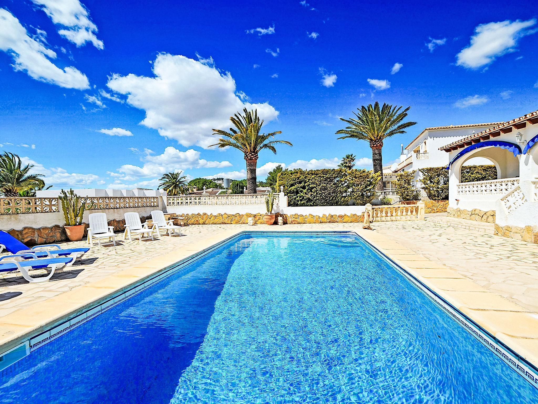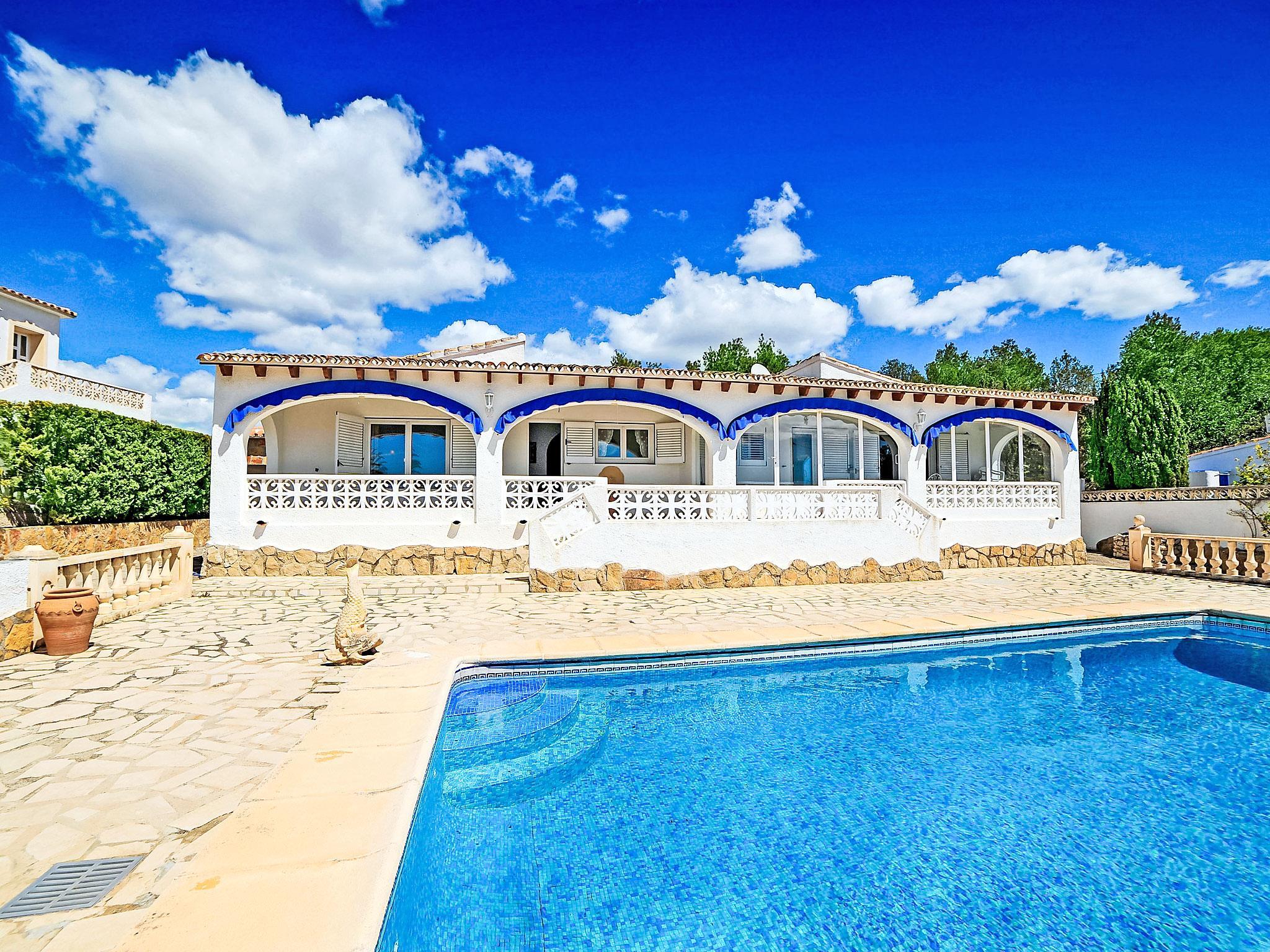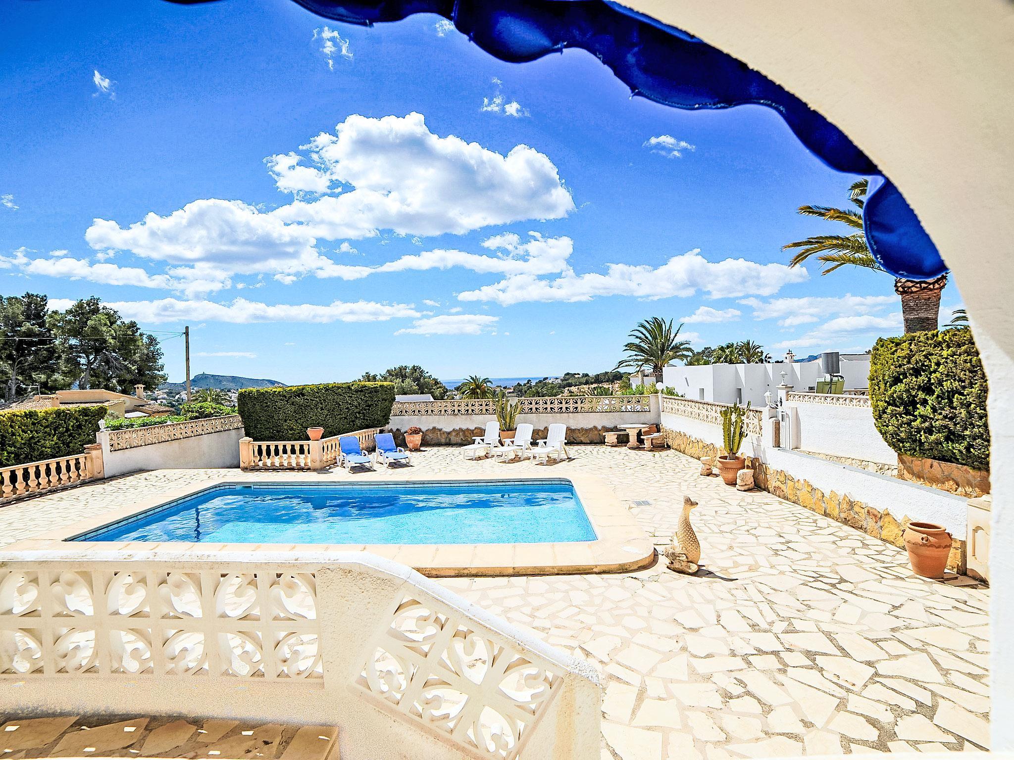 La Sabatera: Single-family house "La Sabatera". 3 km from the centre of Moraira, in a quiet, sunny position, 4 km from the sea, 4 km from the beach. Private: property 600 m2, swimming pool (8 x 4 m, depth 120 - 200 cm, seasonal availability: 01.Jan. - 31.Dec.) with internal staircase. Terrace, garden furniture, barbecue. Supermarket 3 km, restaurant, bar 800 m, bus stop 300 m, sandy beach 4 km. Golf course (18 hole) 6 km. The owner does not accept any youth groups.