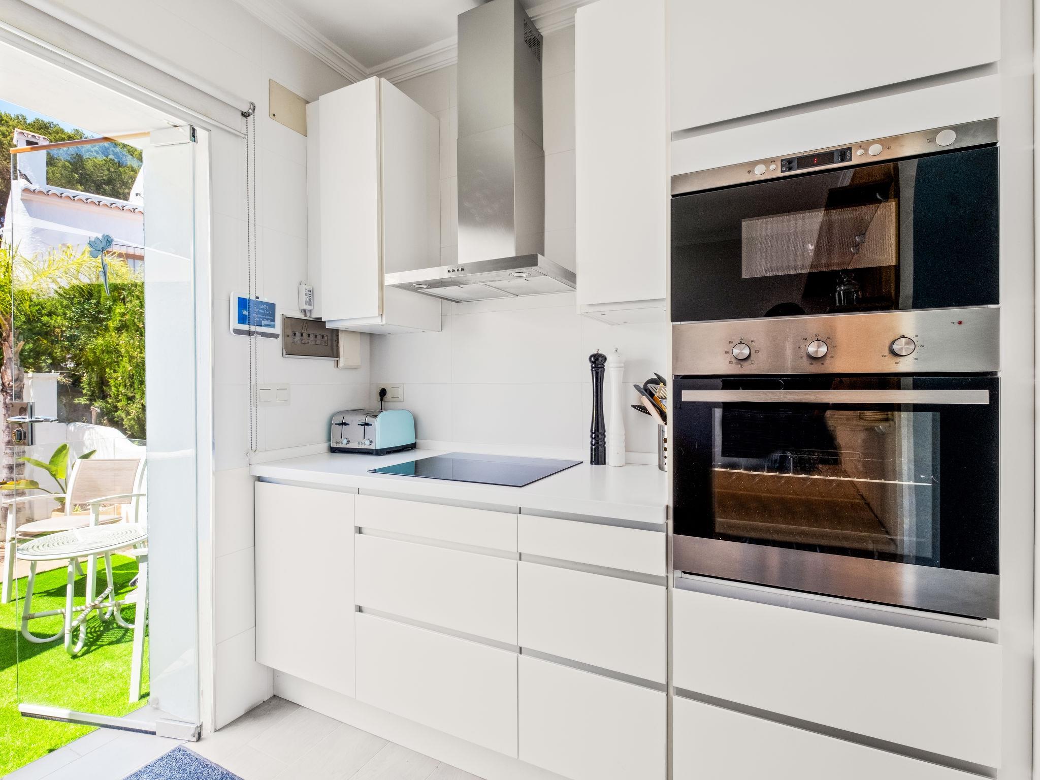"Los Limoneros de Moraira", 3-room house 72 m2. Spacious and bright, beautiful and modern furnishings: open living/dining room with TV, air conditioning and forced-air heating. Exit to the garden, to the terrace. 1 room with 1 french bed (1 x 180 cm, length 200 cm), satellite TV, air conditioning, fan and forced-air heating. 1 room with 2 beds (90 cm, length 200 cm), air conditioning, fan and forced-air heating. Open kitchen (oven, dishwasher, 4 ceramic glass hob hotplates, toaster, kettle, microwave, electric coffee machine). Shower/WC. Large terrace. Barbecue, deck chairs, sitting area. View of the resort. Facilities: washing machine, dryer, iron, children's high chair, baby cot for up to 2 year olds, hair dryer. Internet (WiFi, free). Parking (roofed). Please note: non-smoking house. CV-VUT0517422-A // Reg. Nr.: ESFCTU0000030380007911750000000000000CV-VUT0517422-A2