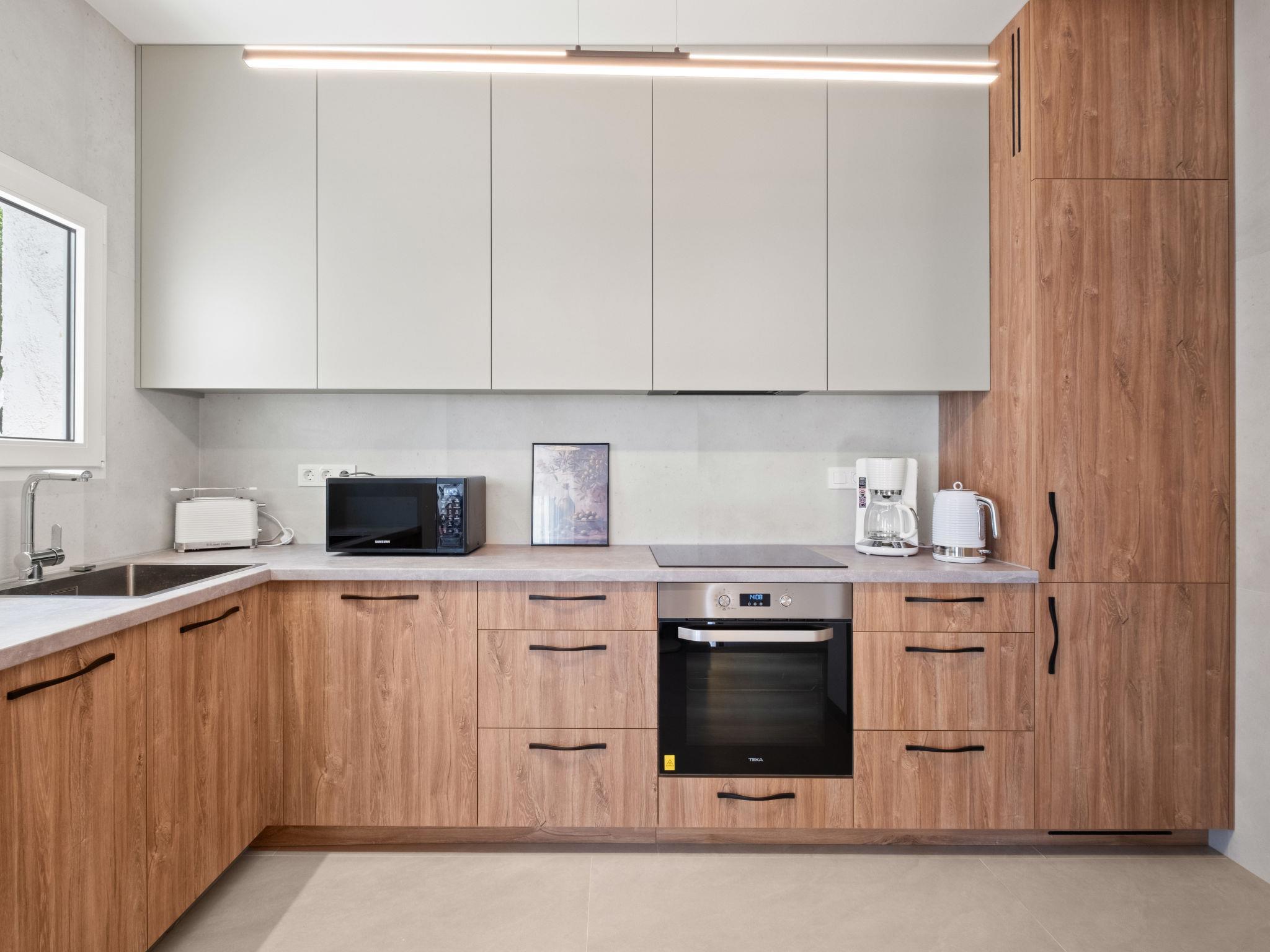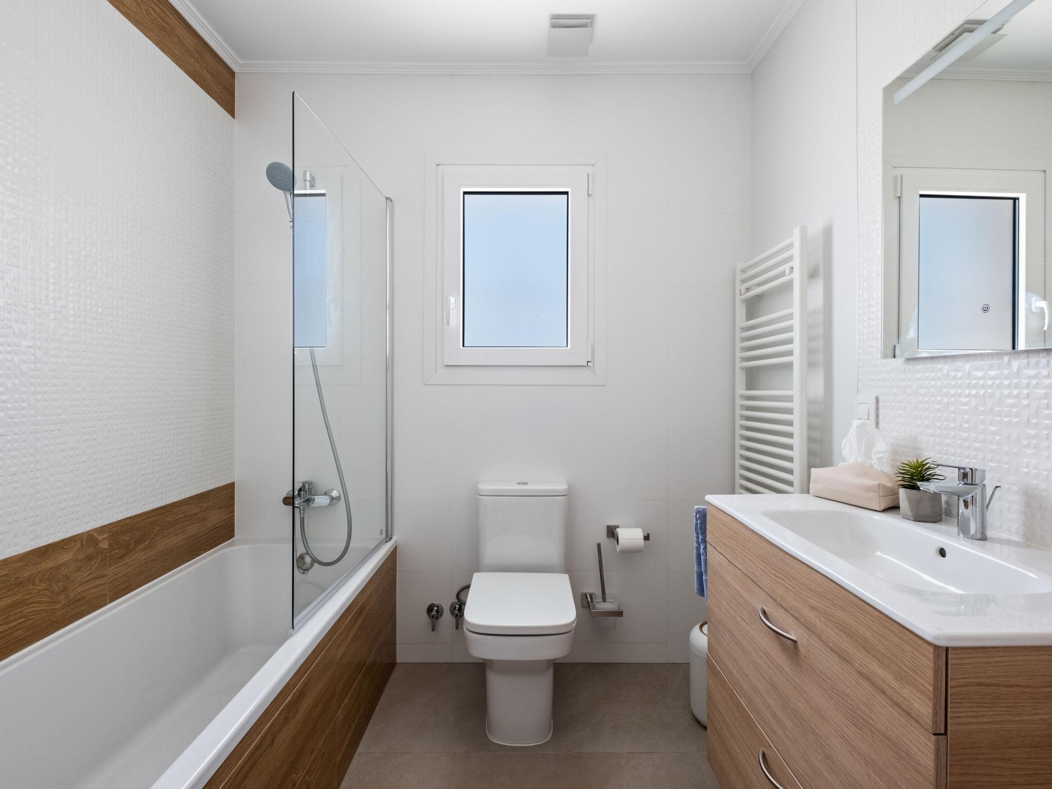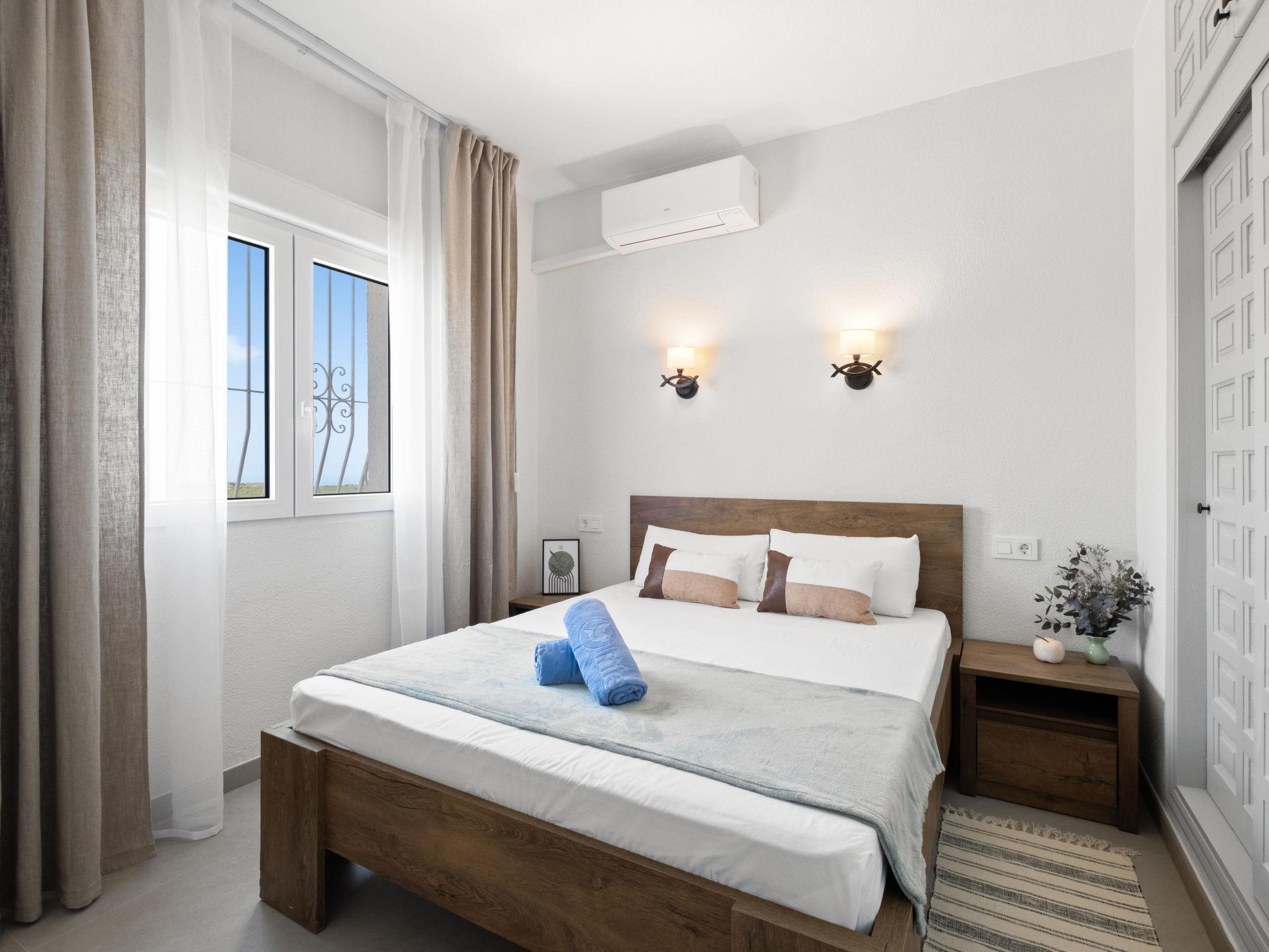 "Dalias", 6-room villa 220 m2 on 2 levels. Object suitable for 8 adults + 2 children. Spacious, comfortable and beautiful furnishings: open living/dining room with TV, air conditioning and forced-air heating. Exit to the terrace. 1 room with 1 french bed (1 x 160 cm, length 200 cm), bath/WC. 1 room with 1 bed (160 cm, length 200 cm). Kitchen (oven, 4 ceramic glass hob hotplates, toaster, kettle, microwave, electric coffee machine). Shower/WC. On the lower ground floor: 1 room with 1 french bed (1 x 140 cm, length 200 cm), air conditioning and forced-air heating. 1 room with 1 french bed (1 x 180 cm, length 200 cm), air conditioning and forced-air heating. 1 room with 1 pull-out bed (2 pers. 2 x 90 cm, length 200 cm), air conditioning and forced-air heating. 1 room with 1 french bed (1 x 150 cm, length 200 cm). Exit to the terrace. Bath/WC. Large terrace. Barbecue, deck chairs. Panoramic view of the sea and the countryside. Facilities: washing machine, iron, children's high chair, baby cot for up to 2 year olds, hair dryer. Internet (WiFi, free). Please note: suitable for families one double bedroom is outside the apartment. Maximum 1 pet/ dog allowed. Only Smart-TV. CV-VUT0517349-A