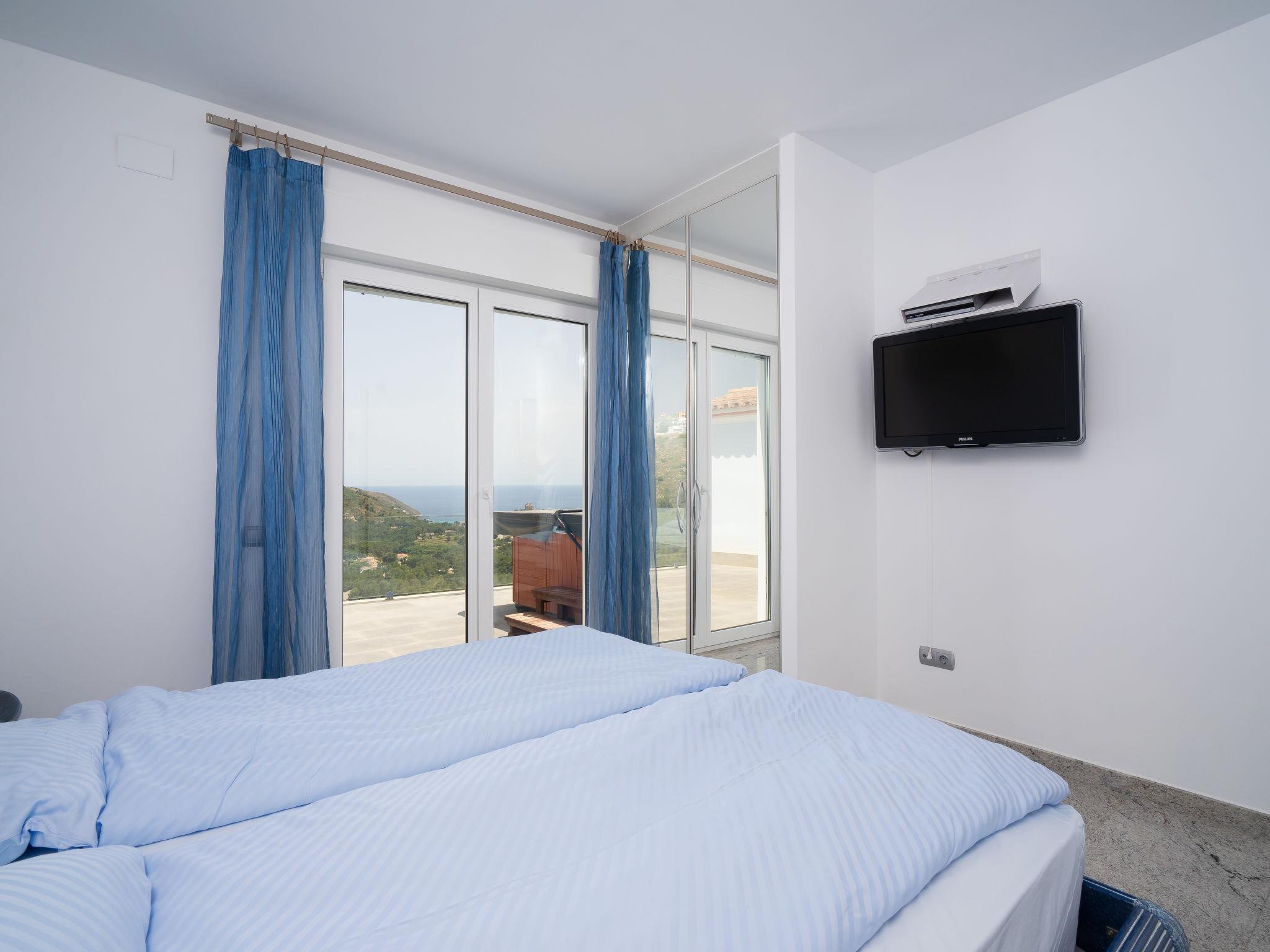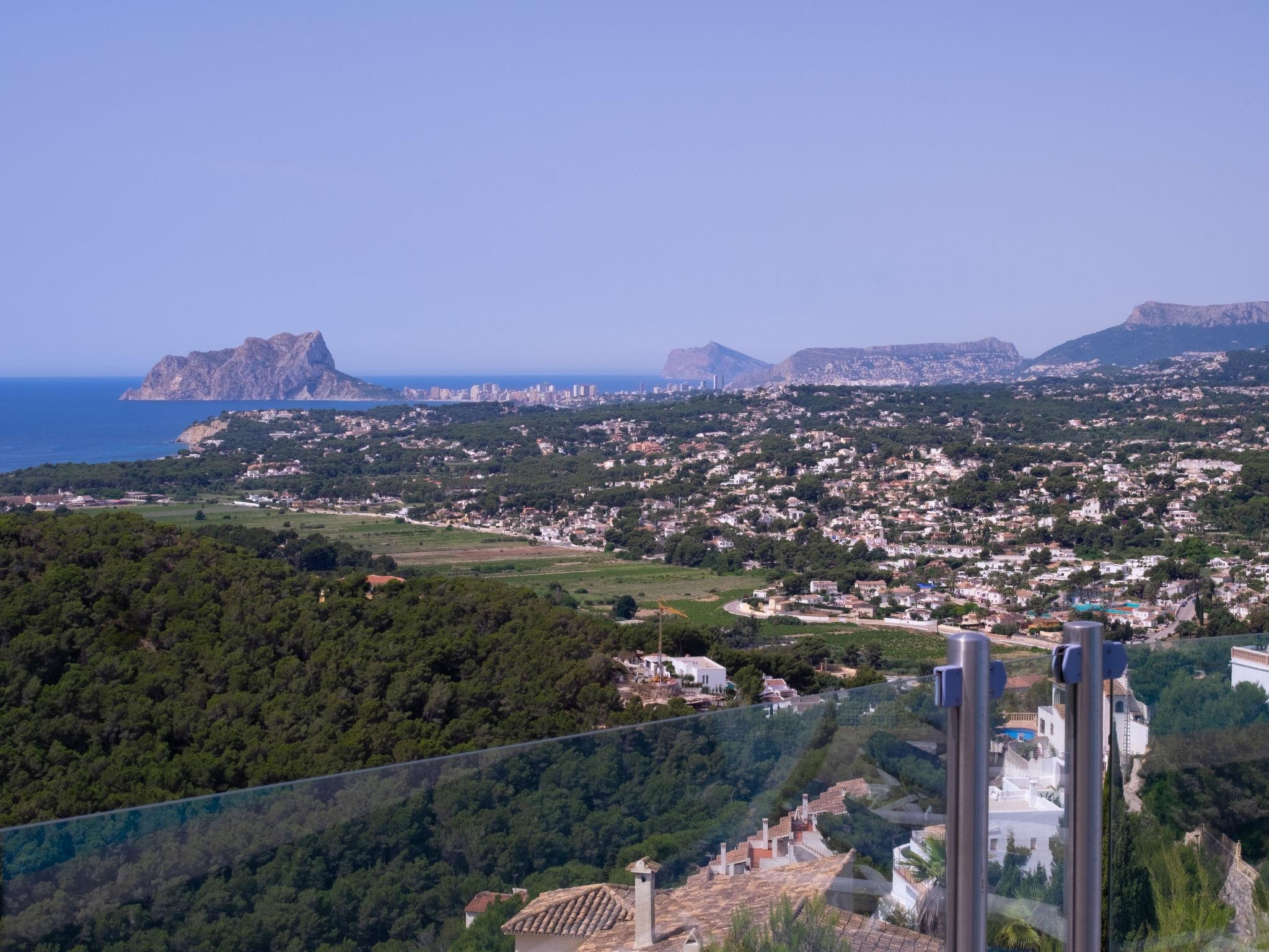 Golden Valley: Very modern, luxurious farm estate "Finca Edel", 2 storeys. 4.5 km from the centre of Moraira, in a quiet, sunny, elevated position, 4.5 km from the sea, in a cul-de-sac. Private: property 1'200 m2 (fenced), swimming pool with privacy (50 m2, seasonal availability: 01.Jan. - 31.Dec.) with internal staircase. Terrace, garden furniture, barbecue house. In the house: sauna, hot tub (all included), central heating system, air conditioning, washing machine, tumble dryer. Supermarket 1.3 km, restaurant 1.3 km, bar 1.3 km, bus stop "Moraira" 4.9 km, railway station "Teulada" 7.1 km, ferry "Denia" 22.7 km, sandy beach "Playa L'Ampolla" 5.4 km. Golf course (18 hole) 9 km. The owner does not accept any youth groups.