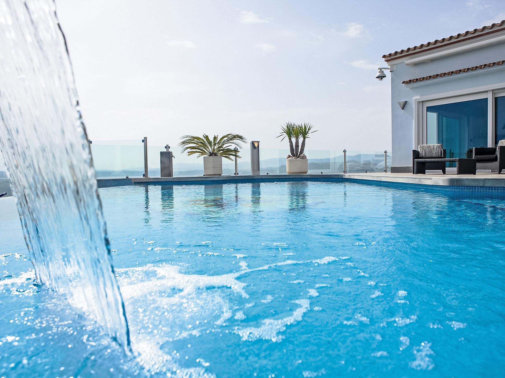 5-room villa 380 m2 on 2 levels. Very beautiful and luxurious furnishings: living/dining room 82 m2 with open-hearth fireplace, satellite TV, radio, hi-fi system and DVD. Exit to the terrace, to the swimming pool. 1 room with 1 french bed, shower/WC and satellite TV. Open kitchen (oven, dishwasher, microwave, freezer). Sep. WC. On the lower ground floor: 1 room with 1 french bed and satellite TV. 1 room with 1 french bed, shower/WC and satellite TV. Exit to the terrace. 1 room with 1 french bed and satellite TV. Exit to the terrace. Shower/WC, bath/shower/WC. Deck chairs, box-room. Beautiful view of the sea. Facilities: Internet (WiFi, free). Garage (2 cars). AT-441006-A // Reg. Nr.: ESFCTU00000303800085047600000000000000000AT-441006-A5