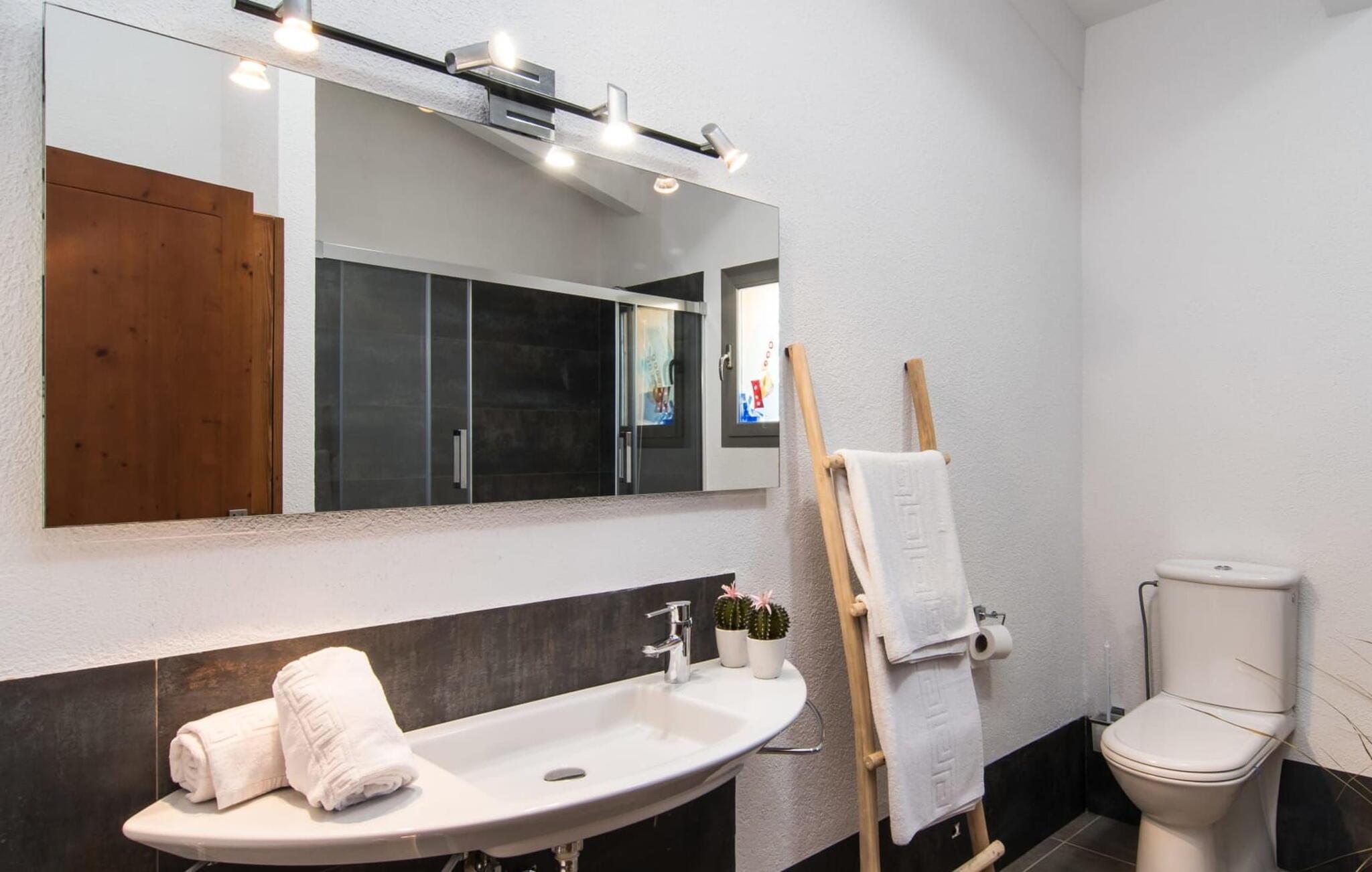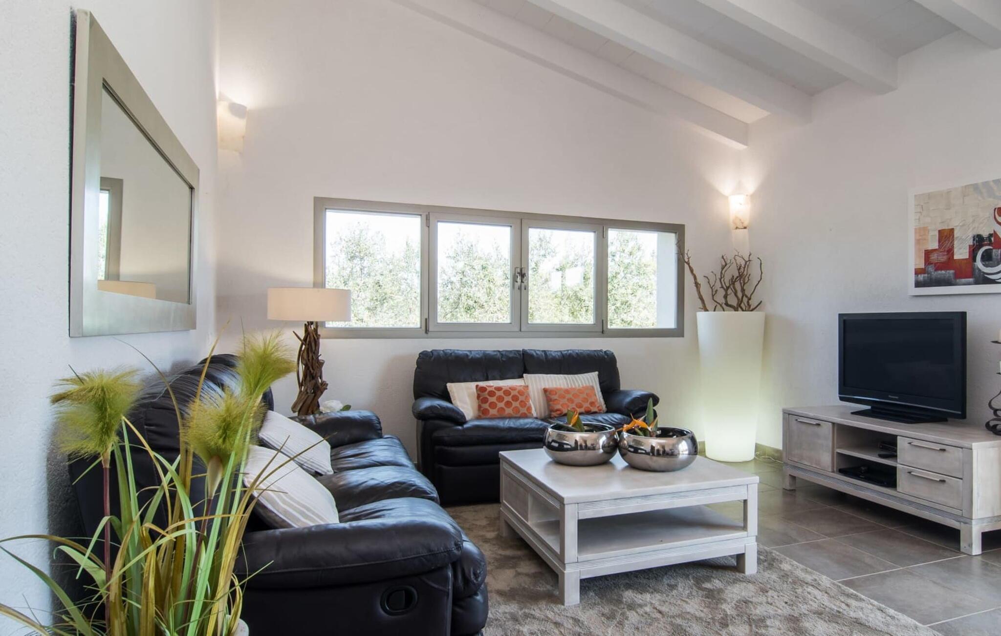 Durch die Terrassentüren gelangen Sie in den Wohn- und Essbereich, der in Erdtönen und mit auffälligem Dekor gehalten ist und eine beruhigende Atmosphäre nach einem aktiven Tag beim Schwimmen, Wandern oder Radfahren schafft. Die drei Schlafzimmer bieten eine Mischung aus dunklen und hellen Kontrasten, ergänzt durch beruhigende Kunstwerke. Zwei Badezimmer, darunter ein eigenes Bad, gehen auf die Bedürfnisse der Gäste ein, während ein langer Flur zusätzlichen Spielraum für Kinder bietet. Genießen Sie einen herrlichen Familienurlaub inmitten der lebendigen Aromen der Region!