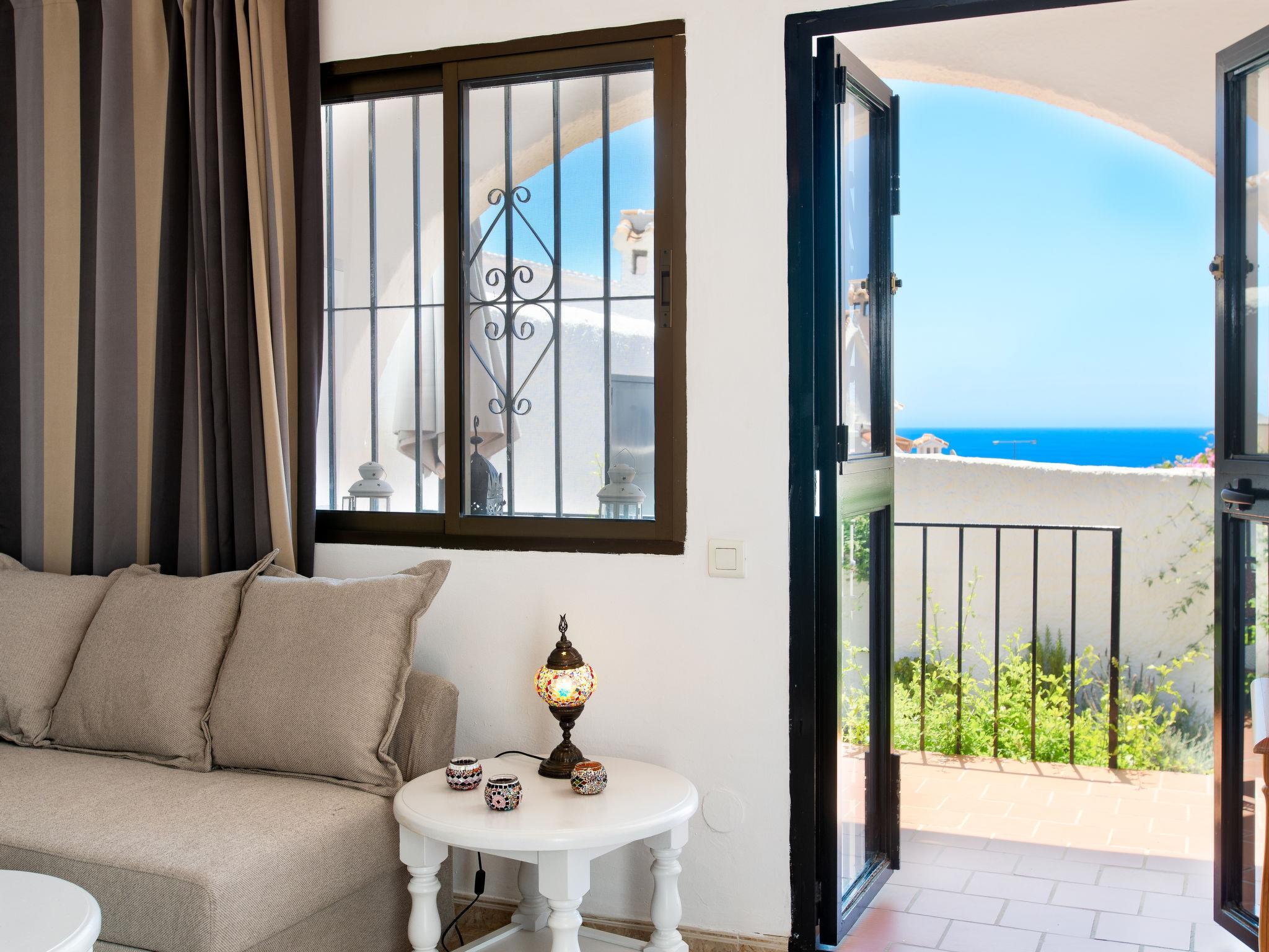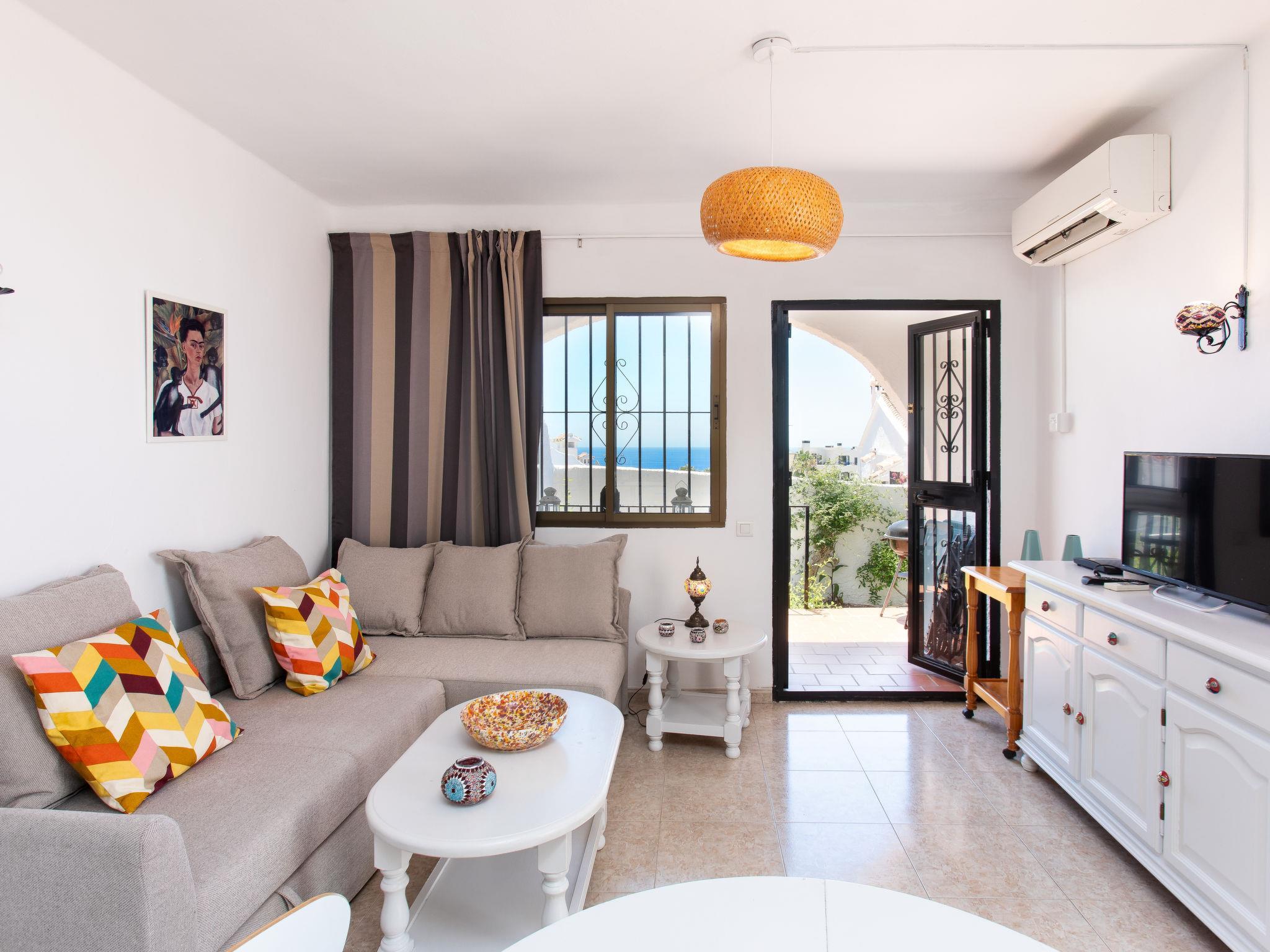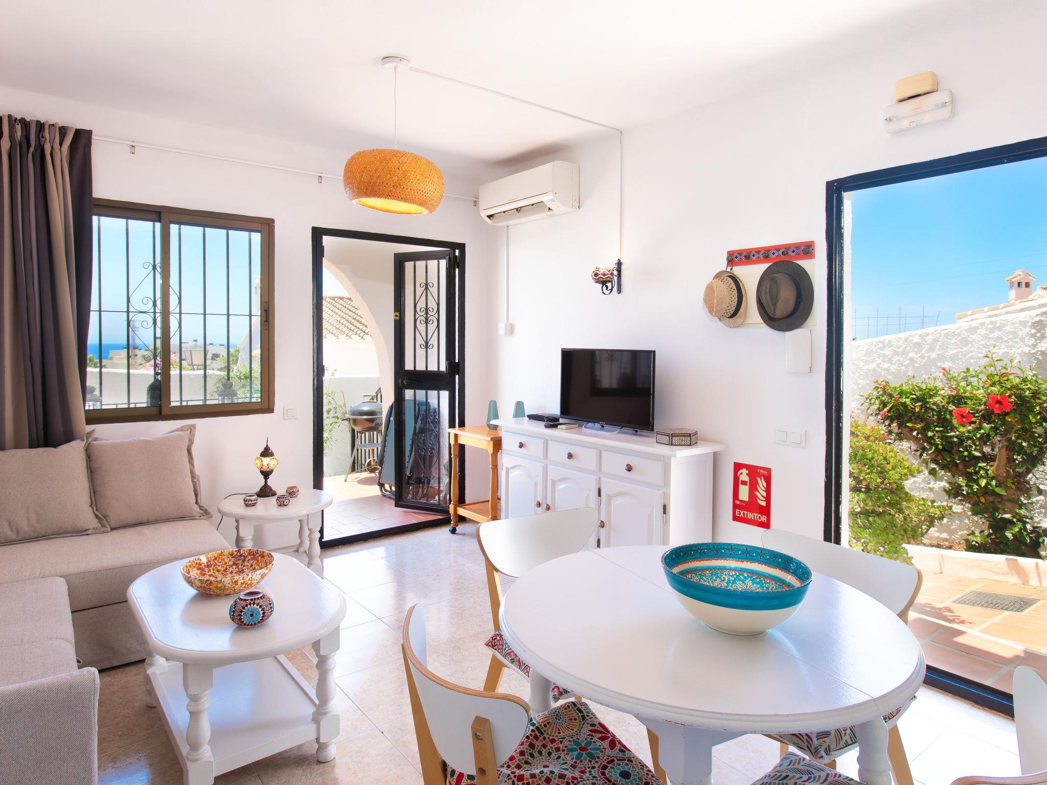 Nerja: Beautiful, cosy apartment block "Maria". In a quiet, sunny position in the residential district, residential area (villas), 1.5 km from the sea, 1.5 km from the beach. For shared use: lawn for sunbathing, 2 swimming pools fenced (seasonal availability: 01.Jan. - 31.Dec. and 01.May. - 01.Oct.). Shower/WC in the pool area, children's pool. Private: garden with lawn. In the house: washing machine. Shop, grocery, supermarket 400 m, shopping centre 23 km, restaurant 250 m, bar 400 m, bakery 400 m, café, pedestrian zone 2 km, bus stop 250 m, pebble beach "Burriana" 2 km, diving center 2 km. The owner does not accept any youth groups.