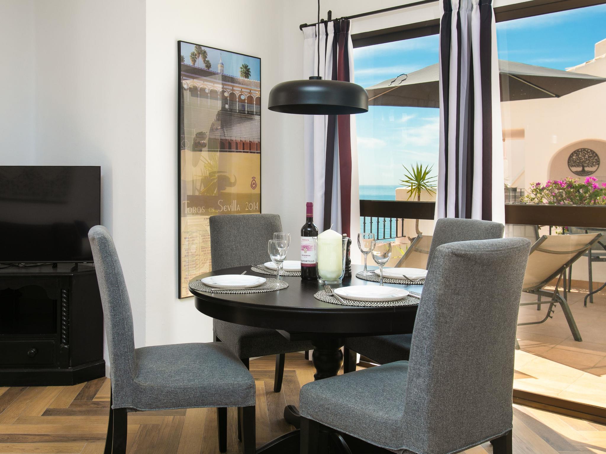 Nerja: Capistrano Playa award winning complex with traditional Andalusian style mix of holiday apartments. Spectacular views over Burriana beach. Private steps down through the gardens that lead to the beach, shops, restaurants, cafes, , watersports, supermarket. Bus stop to Nerja town centre (2km) or 20 minutes lovely walk. There is a beautiful 5-minute walk from the flat down through the gardens to the beach. Please be advised that the walk involves many steps which may not suit those with baby buggies, walking aids, or mobility issues. There is an elevator however from the flat to the street above where you can park for free, from there you can easily drive to the beachfront and park. Cosy, comfortable apartment block "Vista del Mar". 200 m from the sea, 200 m from the beach, road to cross, south facing position. For shared use: large terraced garden, swimming pool kidney-shaped (8 x 5 m, depth 100 - 175 cm, seasonal availability: 01.Mar. - 01.Oct. pool opening hours: 10:00-20:00). Shower/WC in the pool area, children's pool. In the house: WiFi, lift, air conditioning, washing machine. Airport transfer (extra). Public parking on the road. Bus stop "Burriana" 100 m. Sports harbour 17 km, marina 17 km, golf course (18 hole) 25 km, surf school 17 km, sailing school 17 km, tennis 1.5 km. Nearby attractions: Maro, Frigiliana, La Herradura, Almuñecar, Malaga, Granada. Well-known ski regions can easily be reached: Sierra Nevada. Hiking paths: Sierra Tejeda, Sierra Almijara, Alpujarras. On request: airport transfer to the holiday accommodation. The owner does not accept any youth groups.