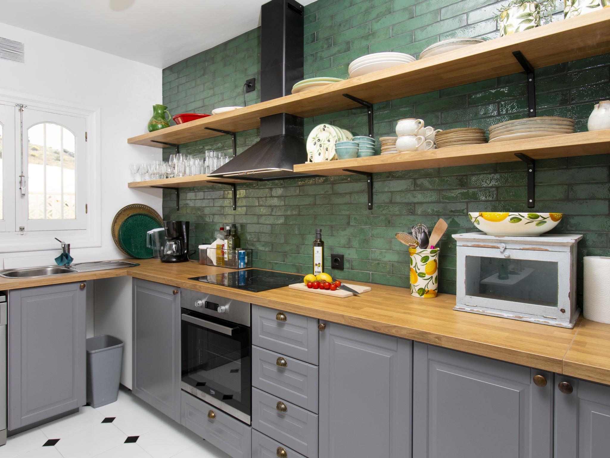 "Jardines de Nerja", 5-room terraced house 110 m2. Practical furnishings: living/dining room with open-hearth fireplace, separate WC, satellite TV, air conditioning and forced-air heating. Exit to the garden, to the terrace, to the swimming pool. Open kitchen (oven, dishwasher, 4 ceramic glass hob hotplates, toaster, kettle, microwave, freezer, electric coffee machine) with dining table. Sep. WC. On the lower ground floor: 1 room with 1 bed (90 cm, length 190 cm), electric heater. 1 room with 1 french bed (150 cm, length 190 cm), air conditioning and forced-air heating. Shower/WC. Upper floor: 1 room with 2 beds (90 cm, length 190 cm), electric heater. Exit to the balcony. 1 room with 1 french bed (150 cm, length 190 cm), electric heater. Exit to the terrace. Bath/WC. Terrace furniture, deck chairs. Very beautiful view of the sea, the swimming pool, the garden and the resort. Facilities: washing machine, iron, children's high chair, baby cot, hair dryer. Internet (WiFi, free). VUT/MA/61517 // Reg. Nr.: ESFCTU0000290130001741260000000000000000VUT/MA/615171