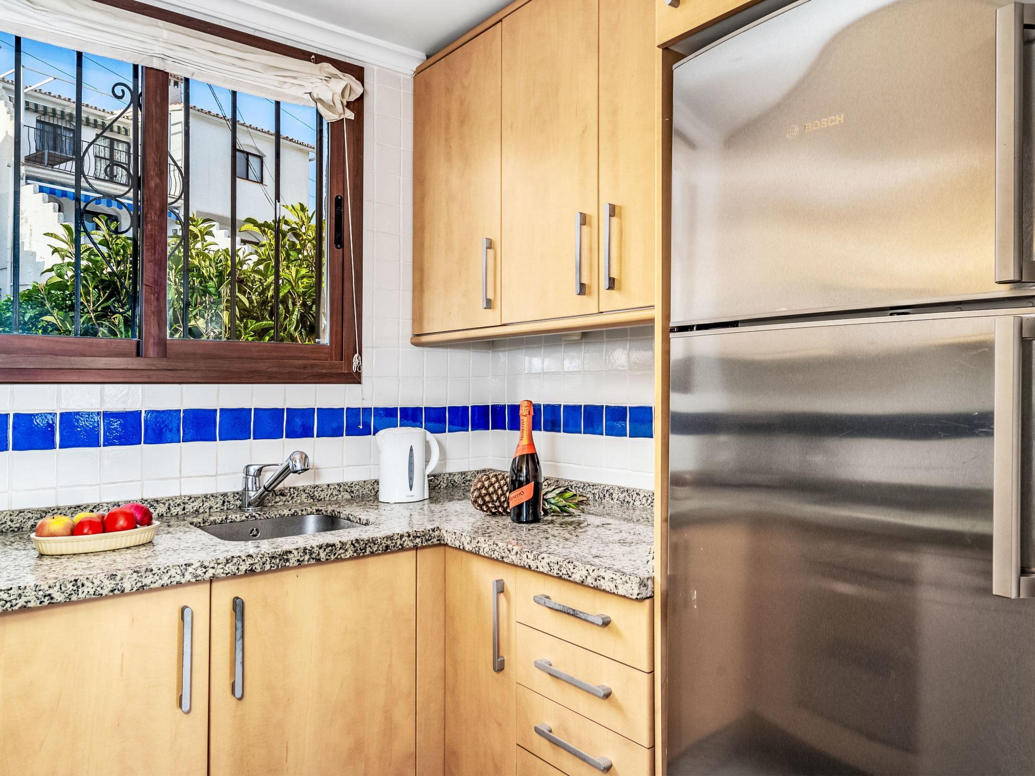 Beautiful, comfortable apartment block "Naranjos". In a sunny position residential area (villas), 2 km from the sea, 2 km from the beach, south facing position. For shared use: lawn for sunbathing, 2 swimming pools (seasonal availability: 01.Jan. - 31.Dec.). Shower/WC in the pool area. Private: garden. Shop 200 m, shopping centre 20 km, bus stop "Capistrano" 100 m, railway station "Malaga" 55 km.
