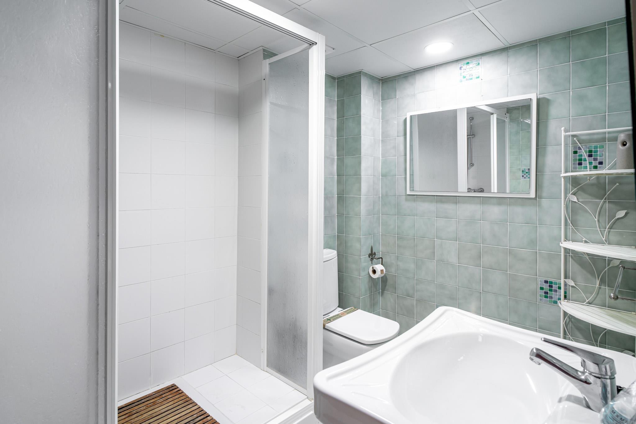 On the 1st floor: (Living room(TV(satellite), dining table, seating area, radio), open kitchen(electric kettle, toaster, coffee machine, oven, microwave, fridge-freezer, dishes and cutlery), bedroom(double bed), bedroom(single bed, single bed), bathroom(shower, hairdryer), Internet access) Elevator, washing machine, balcony, air conditioning, terrace, swimming pool(shared with other guests), iron, air to air heatpump