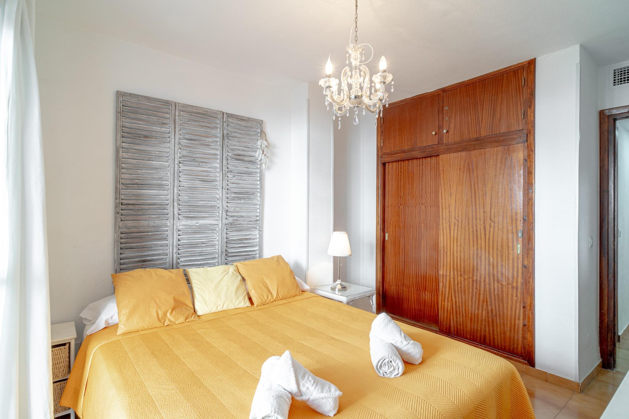 A tastefully furnished apartment, this bright and comfortable property features two bedrooms—one with a double bed and the other with two single beds—comfortably accommodating up to four guests. It includes a cozy living area with direct access to a private 10 m² terrace and a balcony offering views of the garden and the communal swimming pool. This pet-friendly apartment welcomes animals, excluding dangerous breeds, and is an excellent choice for families or small groups. Optional extras such as a crib, high chair, or champagne bottle can be rented, and complimentary amenities like air conditioning, internet, and bed linens ensure a convenient stay. Centrally located in Nerja, this apartment sits just 200 meters from the sandy Torrecilla Beach and 400 meters from the scenic Balcón de Europa viewpoint. A short walk leads to local shops, including Coviran supermarket only 100 meters away, and nearby restaurants such as Rincón de Encarni. The area is both family-friendly and vibrant, with easy access to public transport. Malaga Airport, approximately 65 kilometers away, serves as the nearest major travel hub, making arrivals and departures efficient for international guests. The apartment also features a fully equipped electric open-plan kitchen fitted with modern appliances including a refrigerator, oven, microwave, freezer, coffee machine, toaster, and kettle. The unit includes one bathroom with a walk-in shower, a hairdryer, and a washing machine for added convenience. Guests benefit from satellite TV, a lift for step-free access, a heating system, and an iron, making the apartment ideal for both short breaks and longer stays.