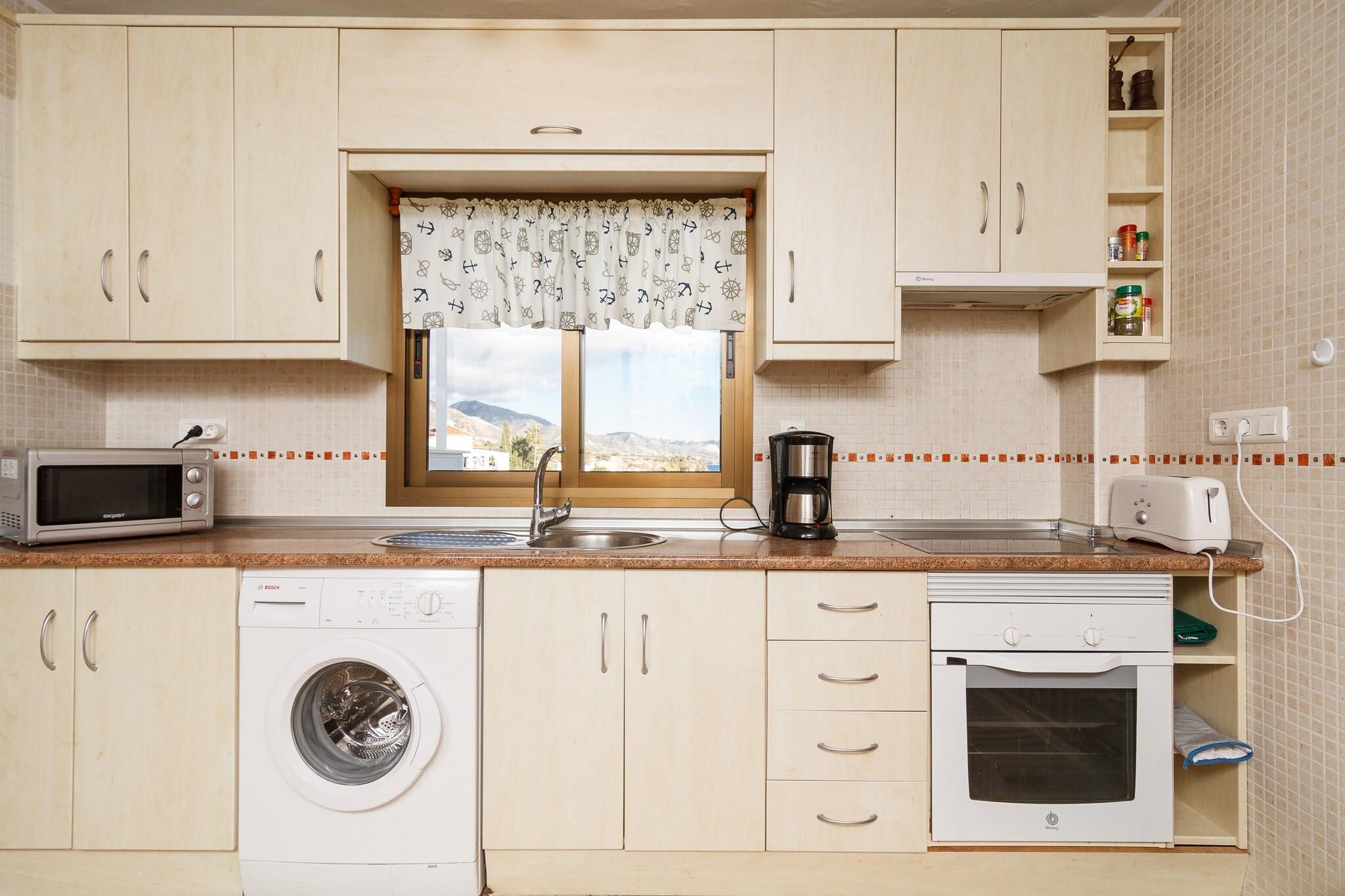 A spacious and charming apartment, this holiday home accommodates up to six guests with one double bed, three single beds across two bedrooms and the living room, and a single sofa bed. Though not pet-friendly, it is ideal for families or small groups seeking a scenic coastal retreat. The apartment features two private terraces offering panoramic views of the sea, lush gardens, and an ornamental lake. Optional services such as a baby cot, high chair, champagne, and a welcome pack are available for added comfort, and a personal check-in service ensures a smooth arrival experience. Nestled in an exclusive Andalusian-style urbanization, this apartment sits atop a hill overlooking Burriana Beach, just 200 meters away. The beach can be accessed via a picturesque path and steps through landscaped gardens. The secure complex includes three swimming pools with varying depths, perfect for all ages. A nearby bus stop connects you easily to Nerja town, which is a 20-minute walk away, while restaurants and other amenities are within close reach for convenient dining and shopping. The accommodation includes an open-plan kitchen equipped with essential appliances and utensils, ideal for self-catering. A well-maintained bathroom with a bathtub adds to guest convenience. The apartment also includes air conditioning and complimentary internet access. Please note, the property is not suitable for guests with reduced mobility due to its hillside location and stair access.