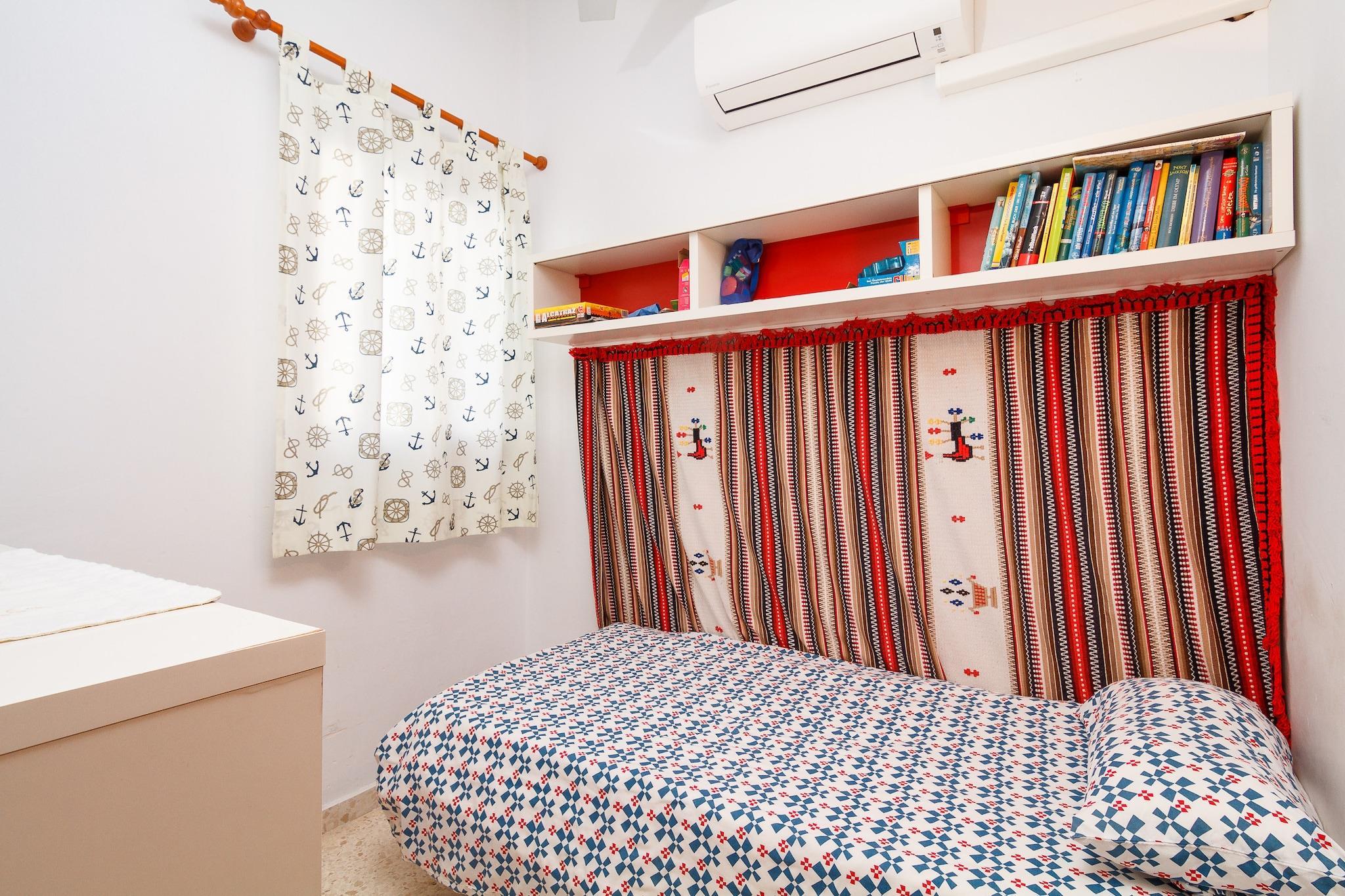 Living room(single sofa bed, TV(satellite), dining table, seating area), open kitchen(hob(electric), electric kettle, toaster, coffee machine, oven, microwave, fridge-freezer, dishes and cutlery), bedroom(single bed), bedroom(single bed, single bed), bedroom(double bed), bathroom(bath tub, hairdryer), Internet access, washing machine, balcony, air conditioning, terrace, garden, swimming pool(shared with other guests), iron
