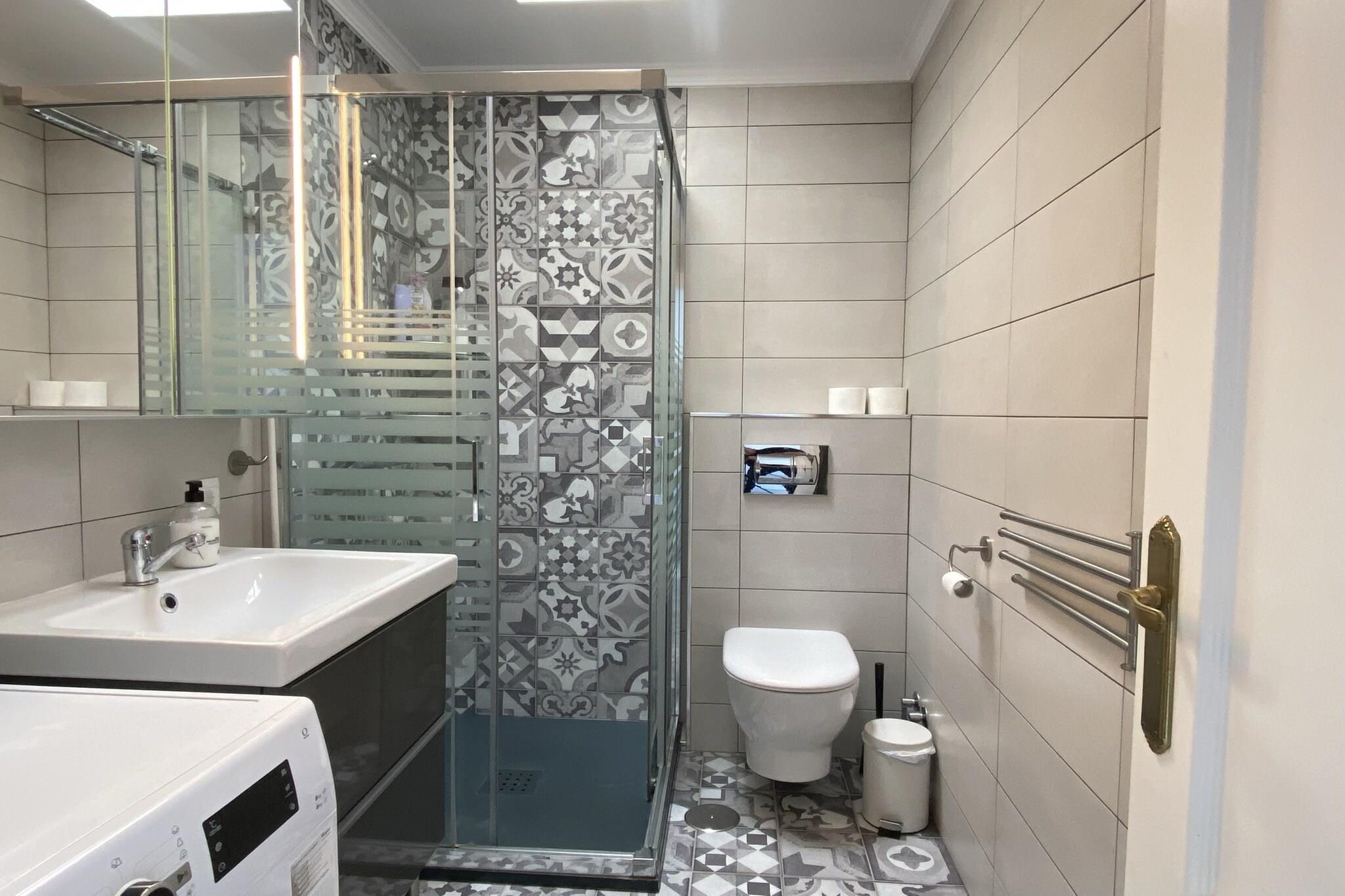 Open kitchen(electric kettle, toaster, coffee machine, oven, microwave, dishwasher, fridge-freezer, dishes and cutlery), Living/diningroom(TV(satellite), dining table, seating area), bedroom(single bed, single bed), bedroom(double bed), bathroom(shower), bathroom(toilet), Internet access, tumble dryer, washing machine, air conditioning, terrace, BBQ, swimming pool(shared with other guests), iron, hairdryer