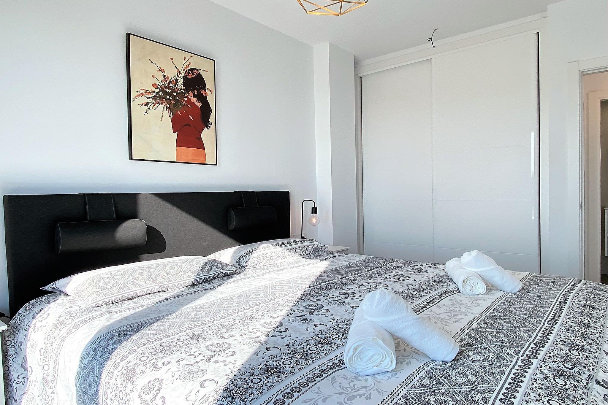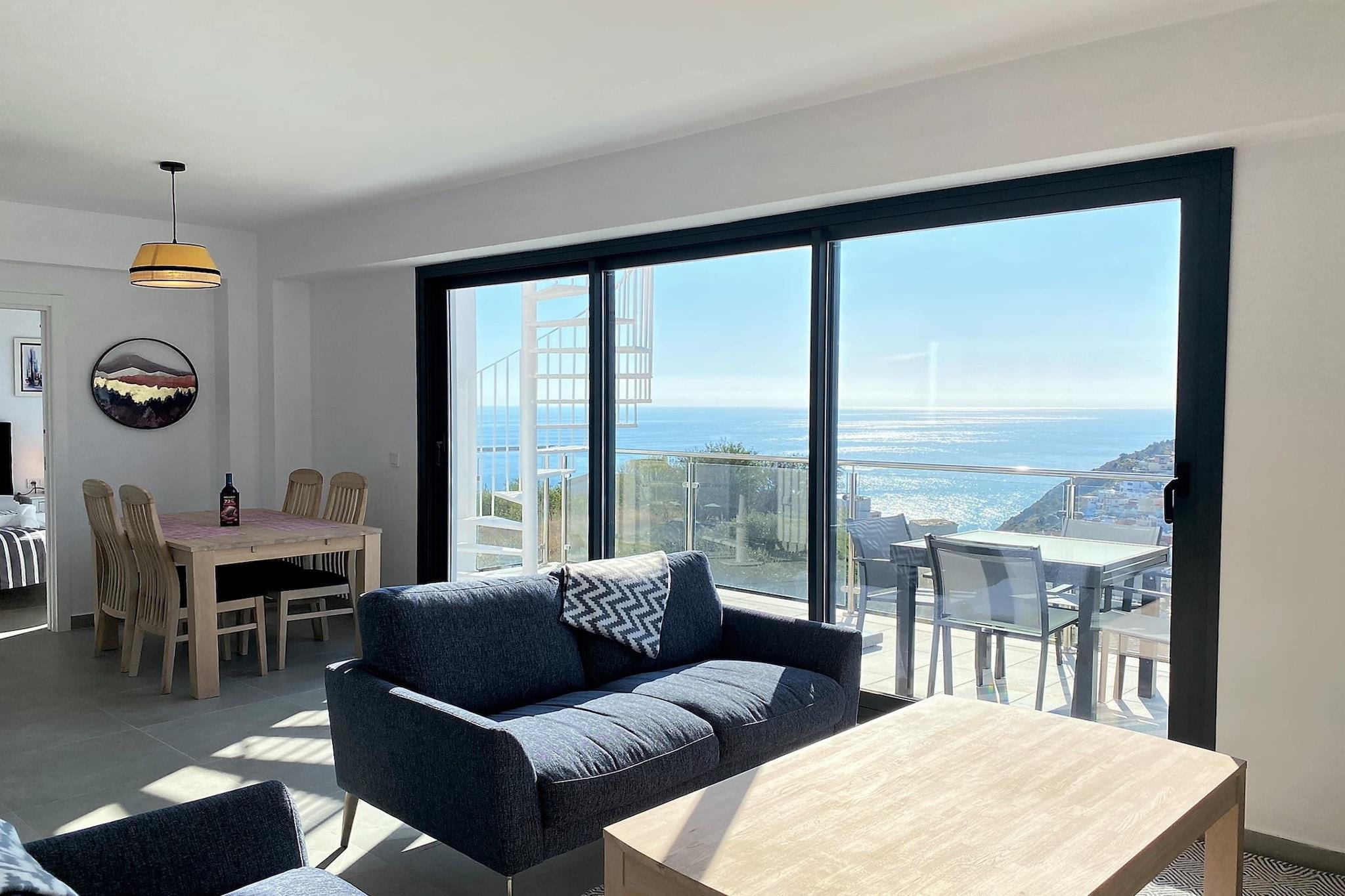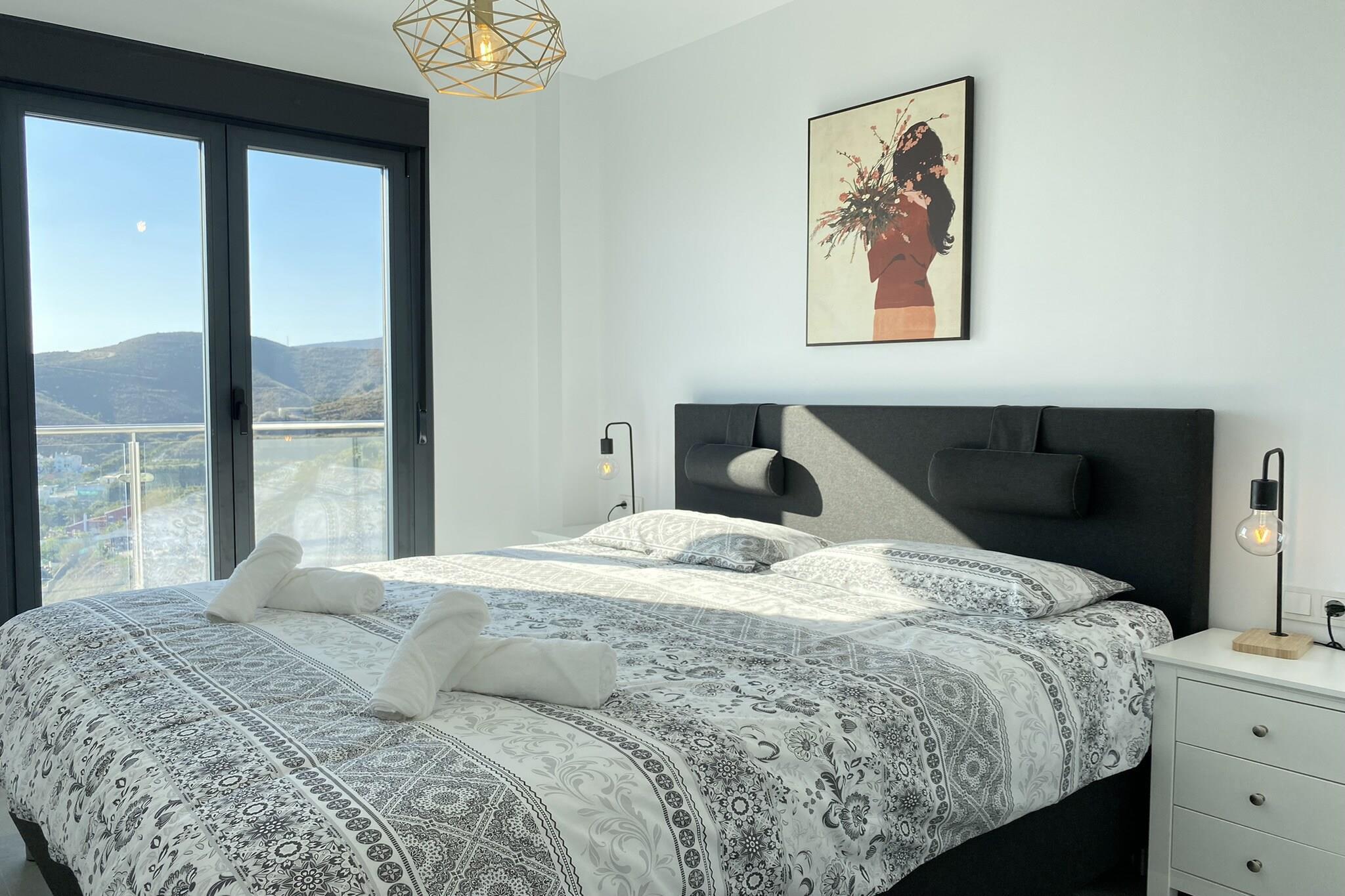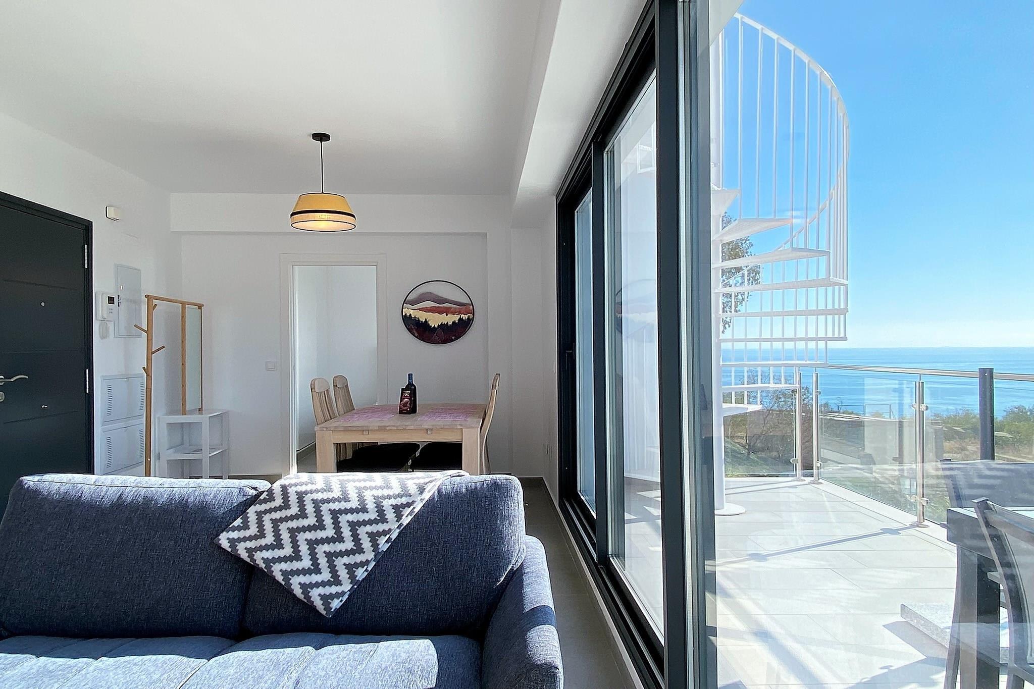 A modern penthouse apartment with two bedrooms designed to comfortably accommodate up to four guests. Each bedroom features high-quality mattresses, offering restful sleep with scenic sea views right from the beds. This apartment is not pet-friendly and is best suited for adults or families without animals. The living area includes a sofa and opens to a spacious private terrace equipped with an outdoor shower and lounge seating. There are no free on-site activities, but optional services like airport transfers or welcome packs can be arranged at an additional cost. Located in a peaceful residential complex between Nerja and Torrox Costa, the apartment provides easy access to both towns by car. The popular beaches of Playazo and Burriana are just a short drive away, and the area offers a range of attractions including local markets, cafés, and Andalusian restaurants. The nearest major airport is Málaga-Costa del Sol Airport, approximately 65 km away. Local bus services connect Nerja to surrounding towns, though car rental is recommended for convenience. The apartment includes a fully equipped kitchen with state-of-the-art appliances such as an induction hob, microwave, oven, fridge, and dishwasher. A washing machine and essential cooking utensils are also provided. The bathroom features a walk-in shower, and the apartment includes internet access, air conditioning, and private covered parking. Guests also have access to a luxurious community pool and an on-site gym.