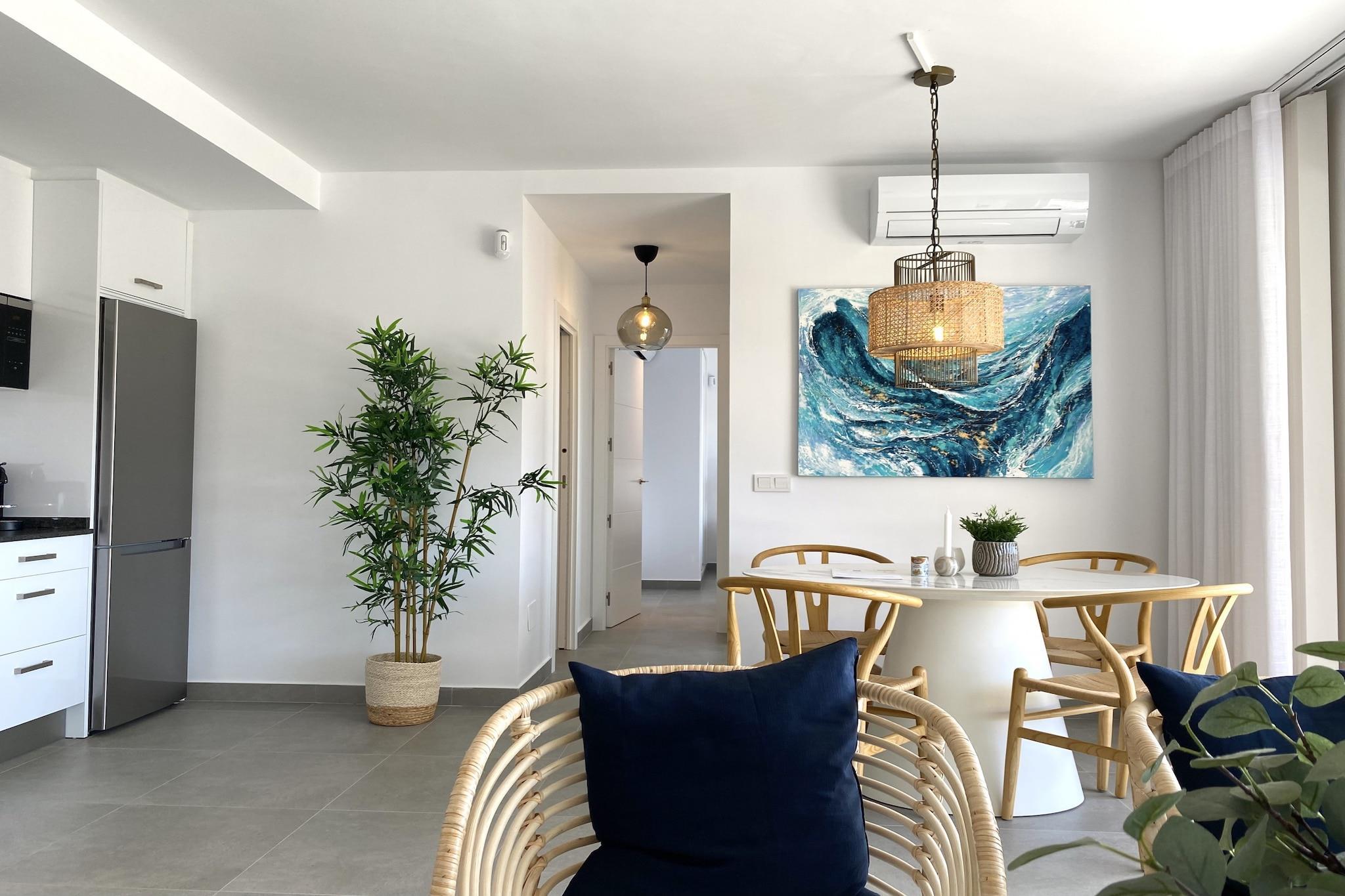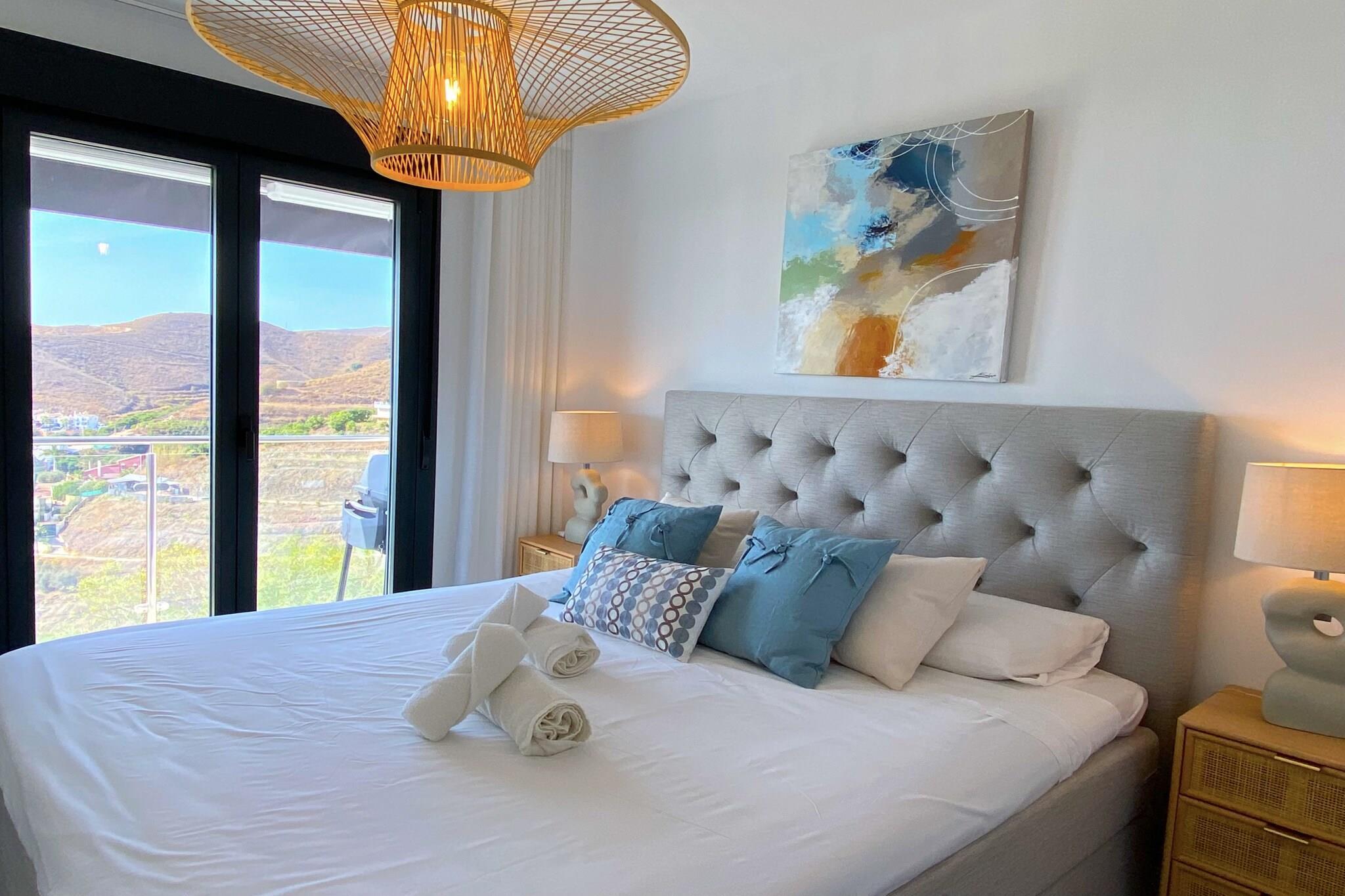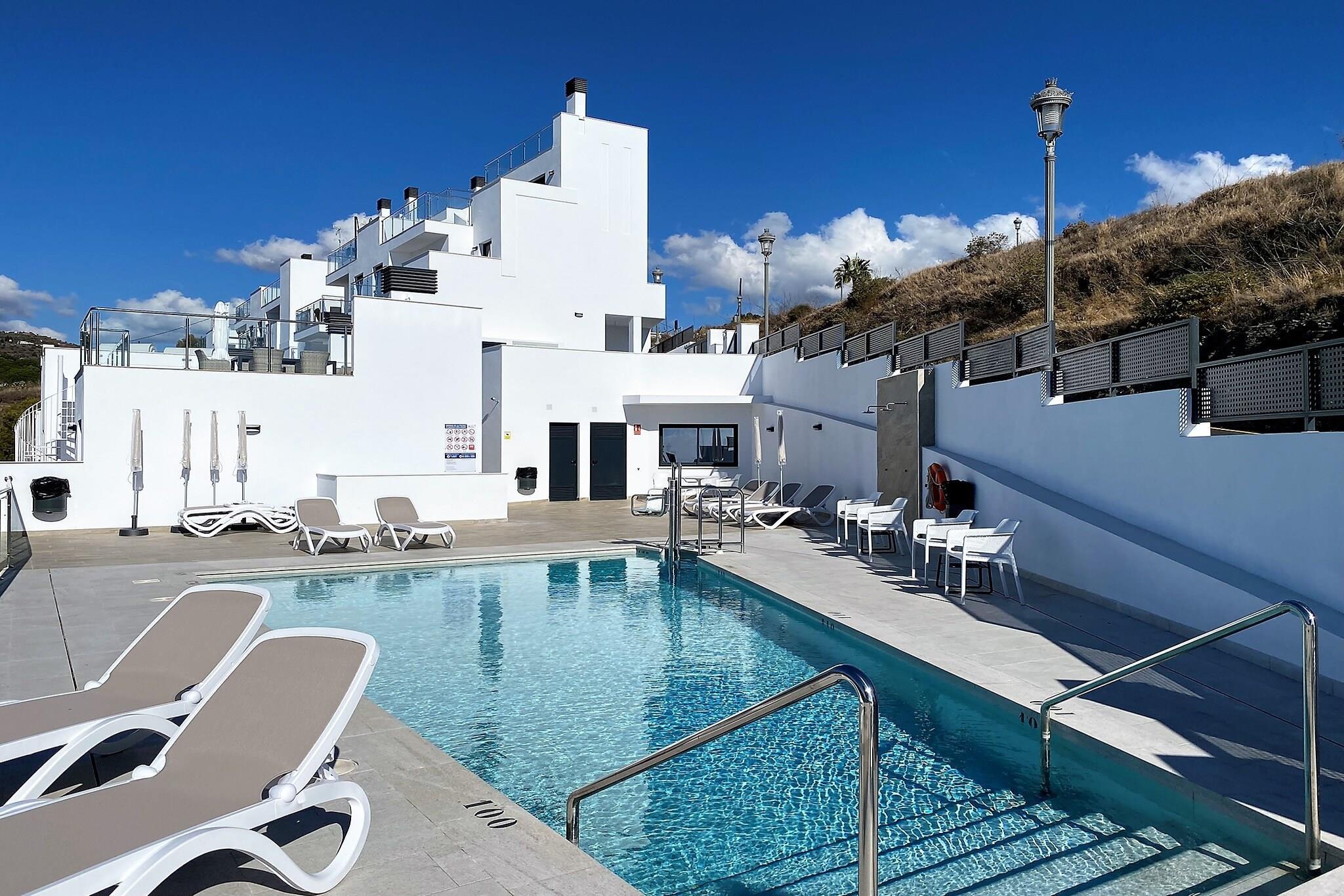 A modern apartment offering comfortable accommodation for up to six guests across three bedrooms, including two rooms with double beds and one with two single beds. This non-pet-friendly property features a private terrace with panoramic views, a cozy living area furnished with a sofa, and access to a shared swimming pool. Guests benefit from included air conditioning, international television, and high-speed internet. Optional items such as a cot, high chair, or welcome pack can be rented on request, but no complimentary activities are offered by the property. Located along the scenic eastern coast of Málaga, this apartment sits between Nerja and Torrox, just 1.2 km from El Playazo Beach. It offers convenient access to local attractions including Torrecilla Beach, Playa Güilche, and the vibrant town centers of both Nerja and Torrox. Guests can explore nearby beach restaurants, local markets, and cafés. A car is recommended for getting around, although a local bus station just 1 km away provides hourly connections to Nerja, the beach, and surrounding areas. Málaga-Costa del Sol Airport is the nearest major travel hub. The apartment includes a fully equipped open-plan kitchen with induction hob, oven, dishwasher, fridge-freezer, microwave, and essential cooking utensils. There are two bathrooms with modern showers and a washing machine available for guest use. Additional features include a lift, hairdryer, and covered private parking space.