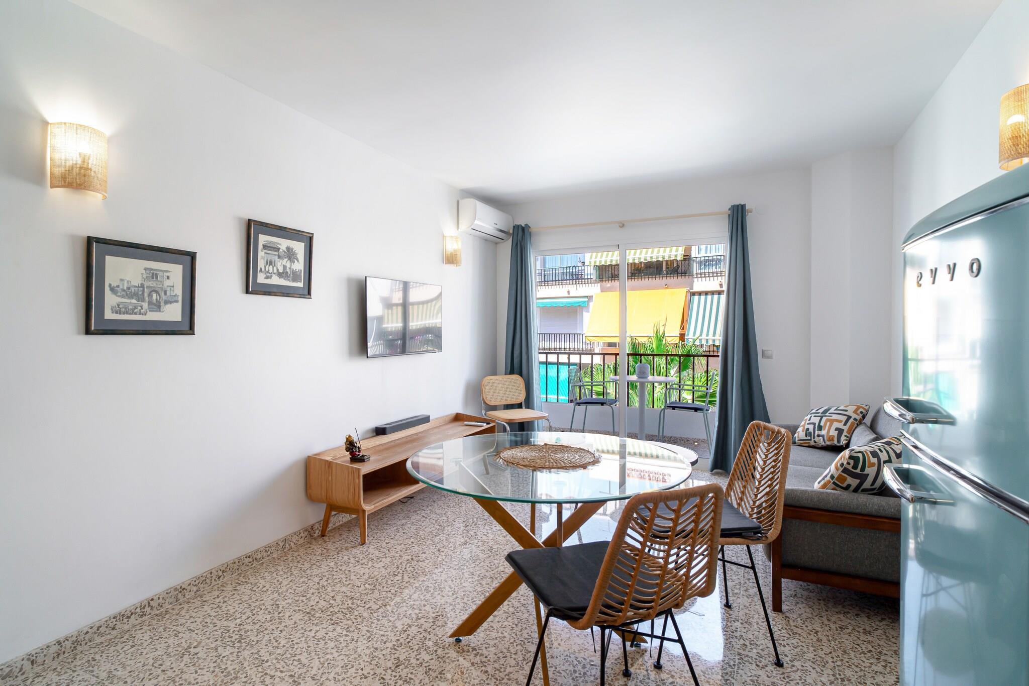 A modern and bright apartment ideal for two guests, this well-appointed space features a comfortable double bed with a premium 150 cm mattress, a stylish seating area, and a private balcony with sea and pool views. The apartment is not pet-friendly but offers a peaceful and convenient stay with essentials such as high-speed Wi-Fi and a Smart TV. Guests can enjoy a communal pool, available seasonally, along with an inviting environment perfect for a couple's getaway or solo retreat. Centrally located in Nerja, the apartment is just a short walk from Torrecilla Beach, providing easy access to the coast and a variety of nearby attractions. The vibrant Plaza Cangrejo is also within walking distance, known for its lively atmosphere, traditional restaurants, and local events. With shops, bars, and cafés close by, this location ensures both convenience and the chance to experience authentic Spanish culture without the need for a car. Additional amenities include a fully equipped open-plan kitchen with an induction hob, dishwasher, microwave, coffee maker, and other cooking essentials. The bathroom is contemporary and includes a walk-in shower and hairdryer. A washing machine, iron, and lift access add extra comfort, making this apartment a practical choice for a relaxed and comfortable holiday.