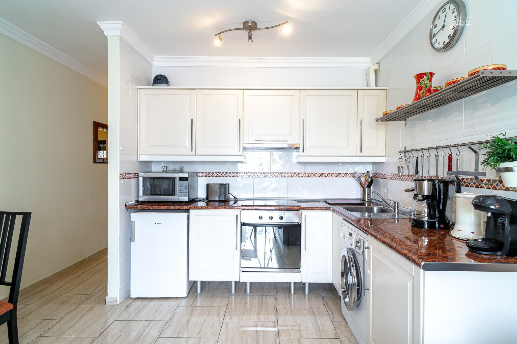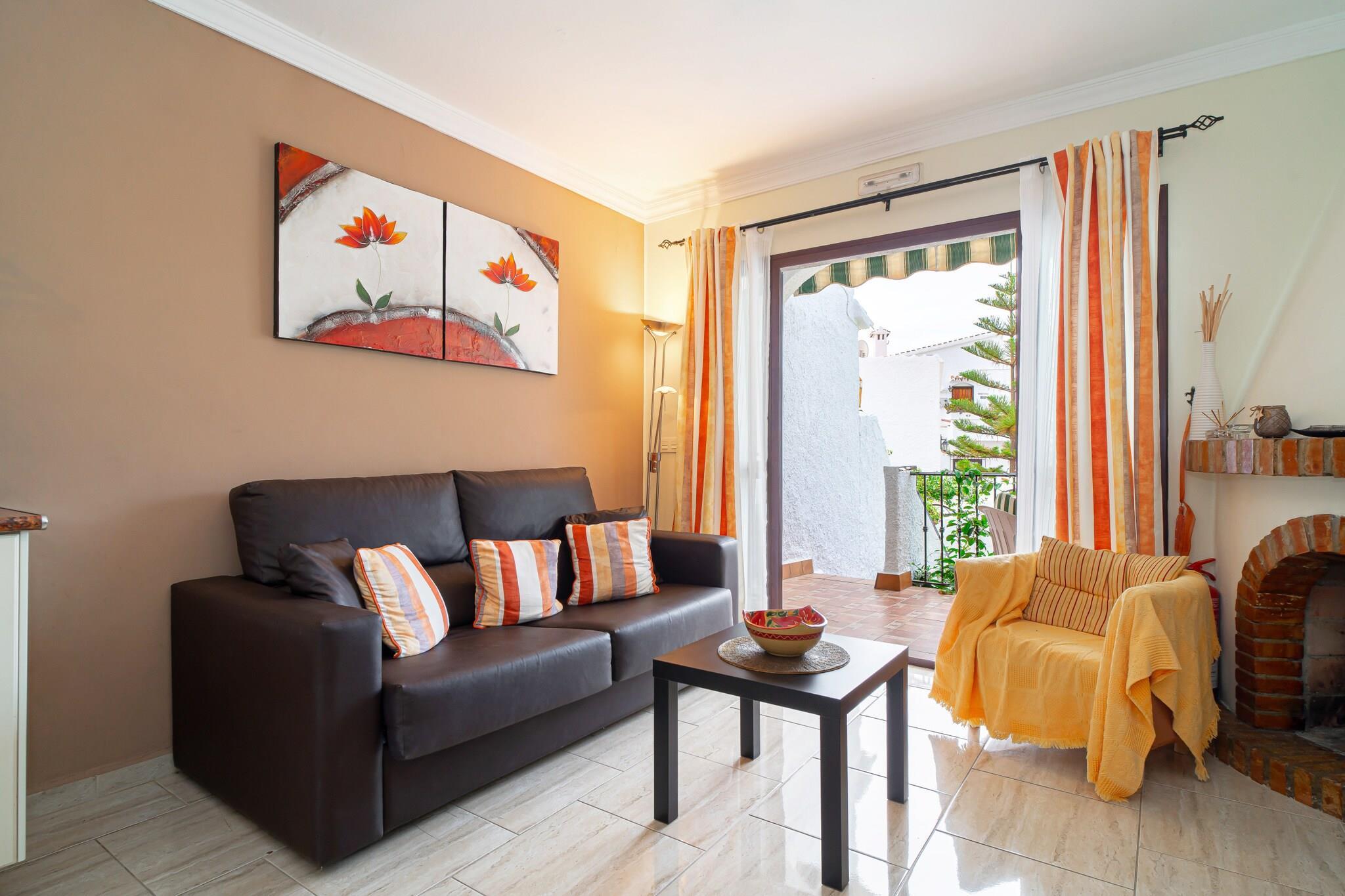 Welcome to this peaceful one-bedroom apartment, ideal for a relaxing stay in Nerja. This bright and well-equipped ground-floor retreat features a comfortable double bedroom, a stylish bathroom with a walk-in shower and washing machine, a fully equipped open-plan kitchen, and a cozy living room with air conditioning, TV, and internet access. The highlight is the private garden terrace facing southwest, furnished with sun loungers — perfect for soaking up the Andalusian sun. Set within the charming Capistrano Village, the apartment gives guests access to two large communal swimming pools (one open year-round), lush gardens, a barbecue area, and an on-site pool bar and restaurant. The whitewashed houses and Mediterranean landscaping create a picturesque and relaxing atmosphere. You’re within walking distance of two large supermarkets (Mercadona and Carrefour), and the local bus stop is just 5 minutes away with regular service to the town centre and beaches. Burriana Beach, one of Nerja’s most popular beaches, is a 25-minute walk from the property, offering water sports, restaurants like the famous AYO, and scenic walking trails with sea views. Free street parking is available nearby. Enjoy our 5-star personal check-in, optional airport transfers, and welcome packs for a smooth arrival. Whether you're planning a sunny escape or a romantic break, this apartment is your perfect home base in Nerja.