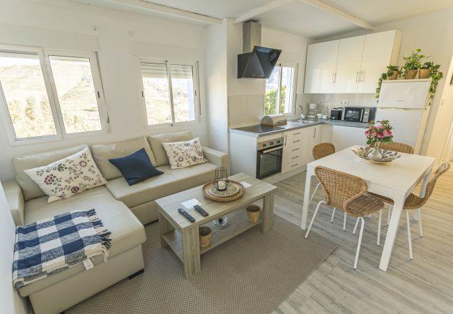 Cortijo Mandala has two bedrooms with a double bed and a single bed in the second bedroom. The living room has a comfortable chaise longue sofa, TV and dining table. Next to the living room is a fully equipped kitchen, microwave, coffee maker, toaster, etc. It has a bathroom with a shower.