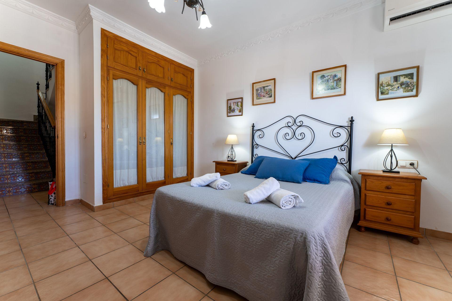 On the ground floor, a spacious living/dining room with an open-plan kitchen gives access to the pool area. The kitchen on this floor is ideal for catering whilst you barbecue by the pool; the kitchen has a fridge/freezer, a 4 ringed vitro hob, oven, washing machine, and breakfast bar. You will find two bedrooms on this floor (one twin and one double) and a spacious bathroom featuring an over bath shower, additional shower, single washbasin, and bidet.