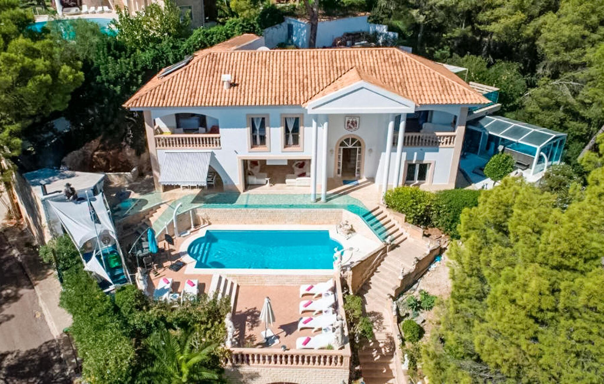 Das Luxus-Urlaubsgefühl setzt sich auch in den Innenräumen der edlen Villa fort. Es erwartet Sie ein überdachter Whirlpool. Wer im Urlaub gerne Sport treibt, kann im hauseigenen Fitnesscenter trainieren. Anschließend finden Sie Wärme und Entspannung in der privaten Sauna. Die traumhafte Villa „Ocean View“ ist somit bestens für die ganzjährige Nutzung geeignet. Neben den Sporträumen überzeugt auch das exklusive Design der überwiegend weißen Möbel. Die weiße Hochglanzküche wird jeden Hobbykoch begeistern. Die fünf Schlafzimmer unterscheiden sich zwischen der Nutzung durch Kinder oder Erwachsene, was die Familienfreundlichkeit dieses fantastischen Ferienhauses unterstreicht. Drei Badezimmer stehen in tollem Design zur Verfügung. Klimaanlage, Downlights, Soundsystem, WLAN mit Home-Office-Fähigkeit und diverse Smart-TVs katapultieren diese erstklassige Familienvilla in das Premium-Segment. Diese elegante und familienfreundliche Ferienvilla bietet sowohl innen als auch außen puren Luxus. Das hochwertige Anwesen liegt in den Hügeln des Dorfes Portal Nous zwischen Palma und Calvià im Südwesten der Insel. Einkaufsmöglichkeiten erreichen Sie in den umliegenden Orten wie Palmanova, Palma oder Calvià. Die Villa liegt 700 m von Cala Bendinat und anderen Sandstränden entfernt.