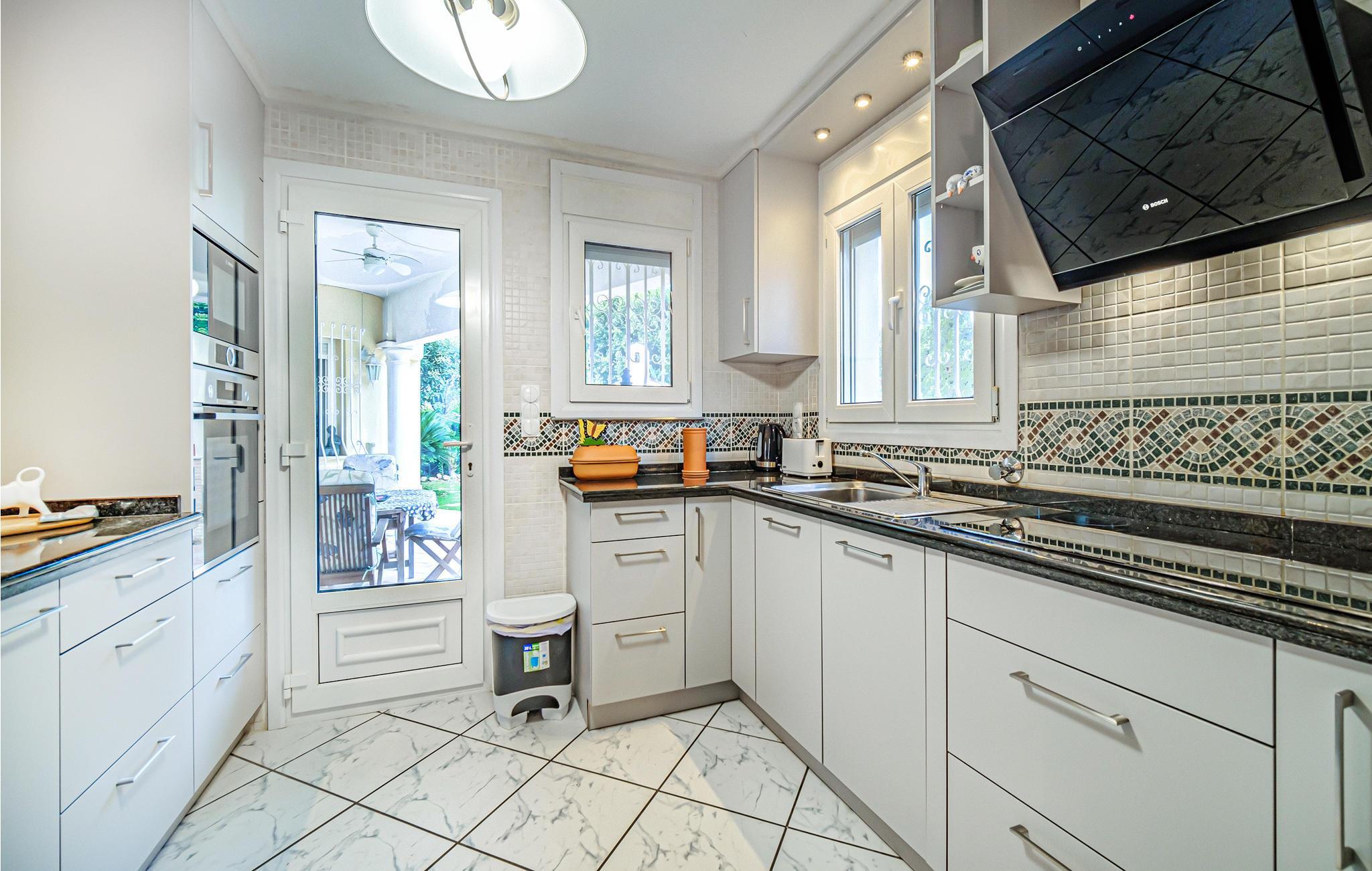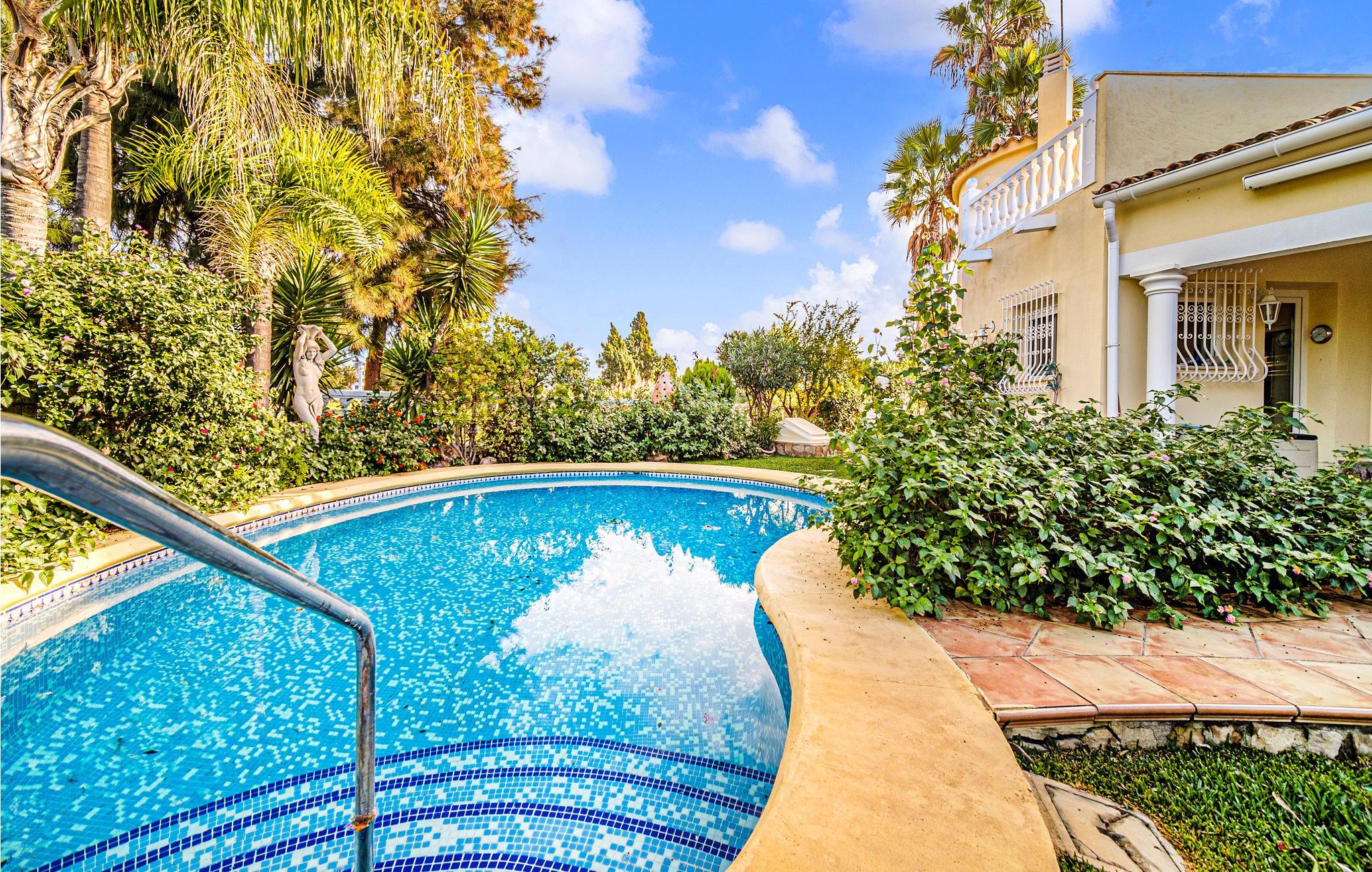 Dieses hübsche Ferienhaus mit Privatpool befindet sich in einer ruhigen Sackgasse in der Urbanisation Oliva Nova Golf Resort, nur wenige Gehminuten von den kilometerlangen Sandstränden entfernt. Es ist ideal für Familien mit Kindern und natürlich Golfspieler. Der Pool ist sichtgeschützt und in eine Rasenfläche eingebettet, was optimalen Komfort zum Sonnenbaden und relaxen bietet. Auf der großen Terrasse können Sie in Ruhe die Sonne genießen, an einem schattigen Plätzchen ein Buch lesen oder grillen.