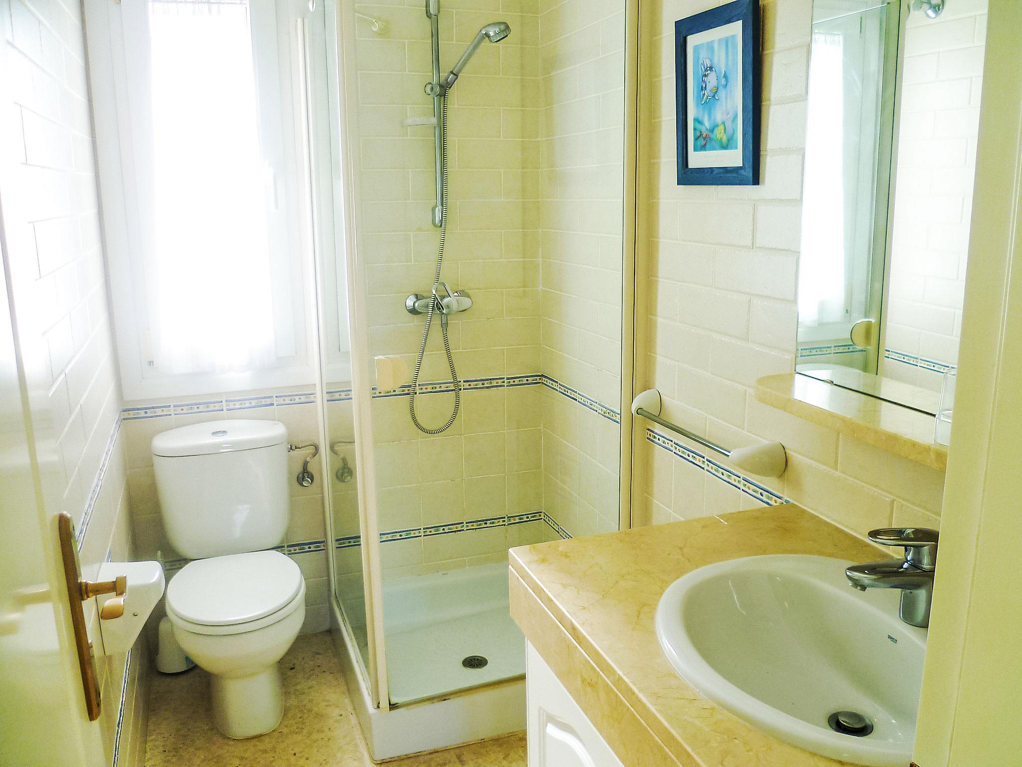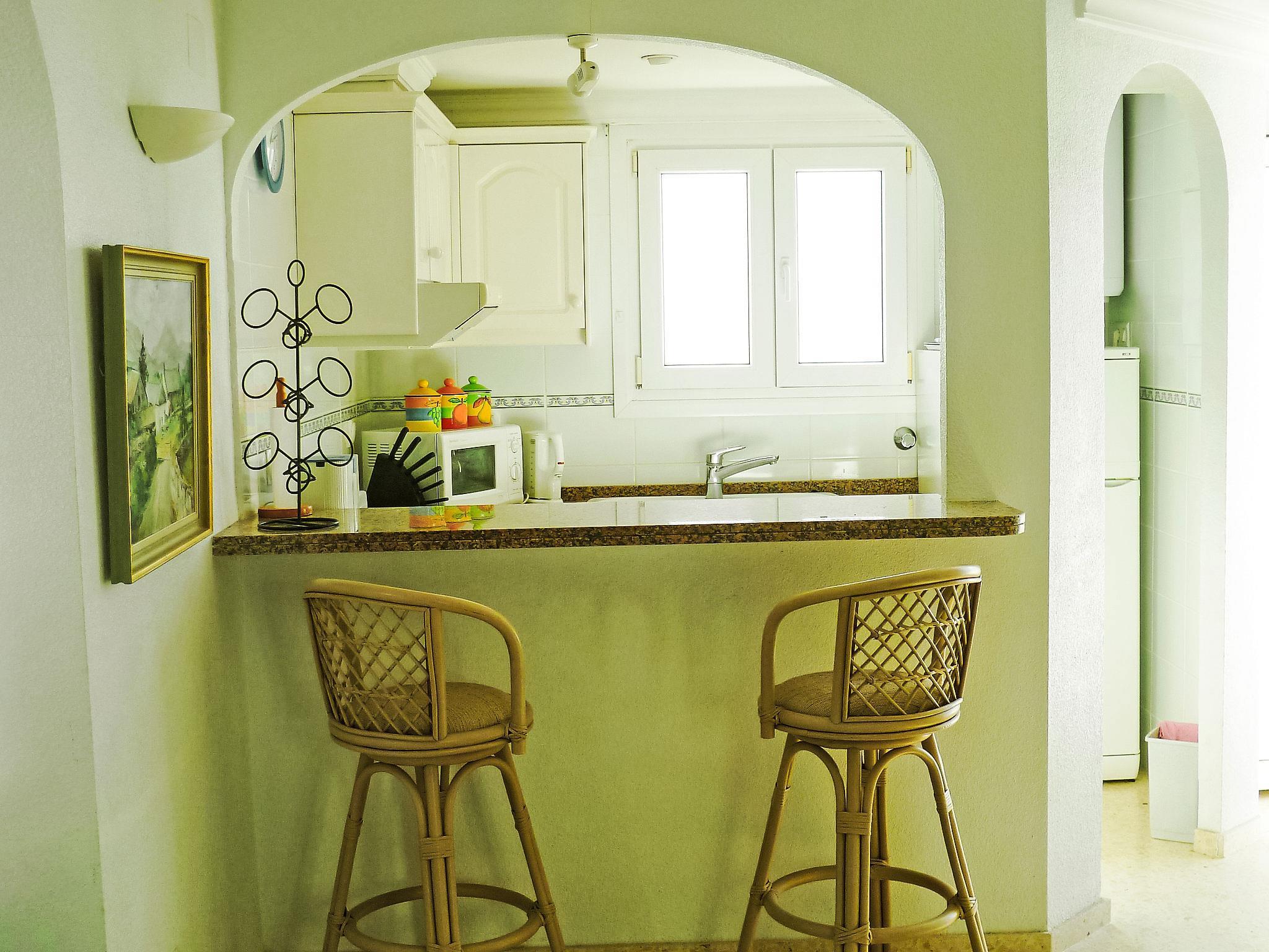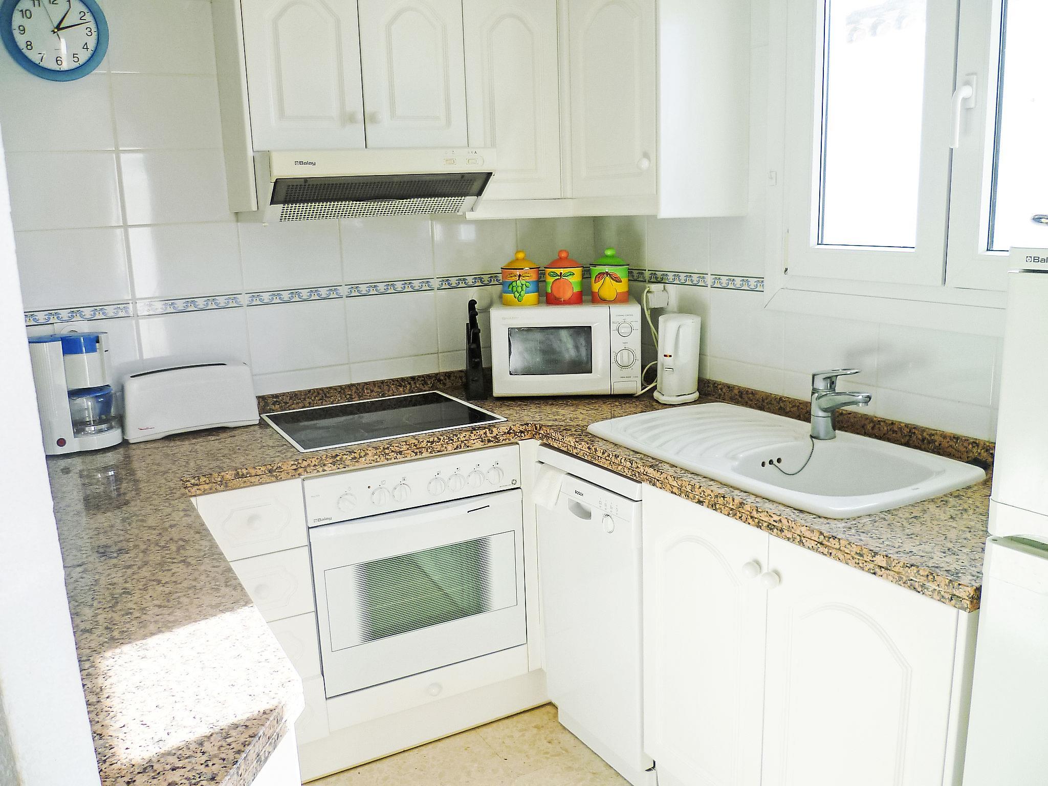 "Club Sevilla I", 3-room apartment 65 m2 on 1st floor. Comfortable and cosy furnishings: living/dining room with satellite TV, digital TV, CD-player, hi-fi system, DVD, air conditioning and forced-air heating. Exit to the garden, to the terrace, to the swimming pool. 1 room with 1 french bed (135 cm, length 190 cm), shower/WC. 1 room with 2 beds (90 cm, length 190 cm). Open kitchen (oven, dishwasher, microwave, freezer) with small bar. Exit to the swimming pool. Bath/WC. Electric heating. Small terrace 10 m2. Terrace furniture. View of the swimming pool and the garden. Facilities: washing machine. Internet (WiFi, free). Suitable for families. AT-31520-V // Reg. Nr.: ESFCTU000046044000508847000000000000000000AT-31520-V2
