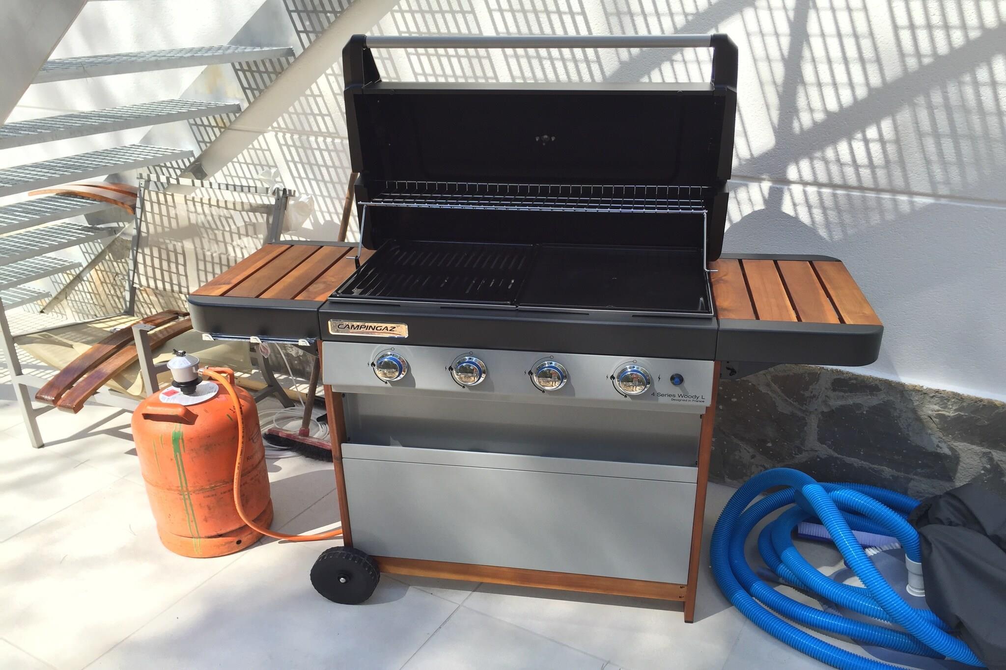Ground floor: (open kitchen(electric kettle, cooker, coffee machine, oven, microwave, dishwasher, fridge-freezer), Living/diningroom(single sofa bed, TV(flatscreen, satellite, international television channels), dining table(6 persons), DVD player), toilet(washbasin, toilet), air conditioning) On the 1st floor: (bedroom(double bed(180 x 210 cm)), Bedroom with bathroom(double bed(180 x 210 cm), massage shower, 2x washbasin, toilet), bathroom(shower, 2x washbasin, toilet), air conditioning, terrace) pantry(tumble dryer, washing machine, ironing board, iron), streamingservice, dishwasher, heating, terrace(150 m2), garden(940 m2), garden furniture, sun loungers, BBQ(gas), parking, parasol, swimming pool(private), children's bed