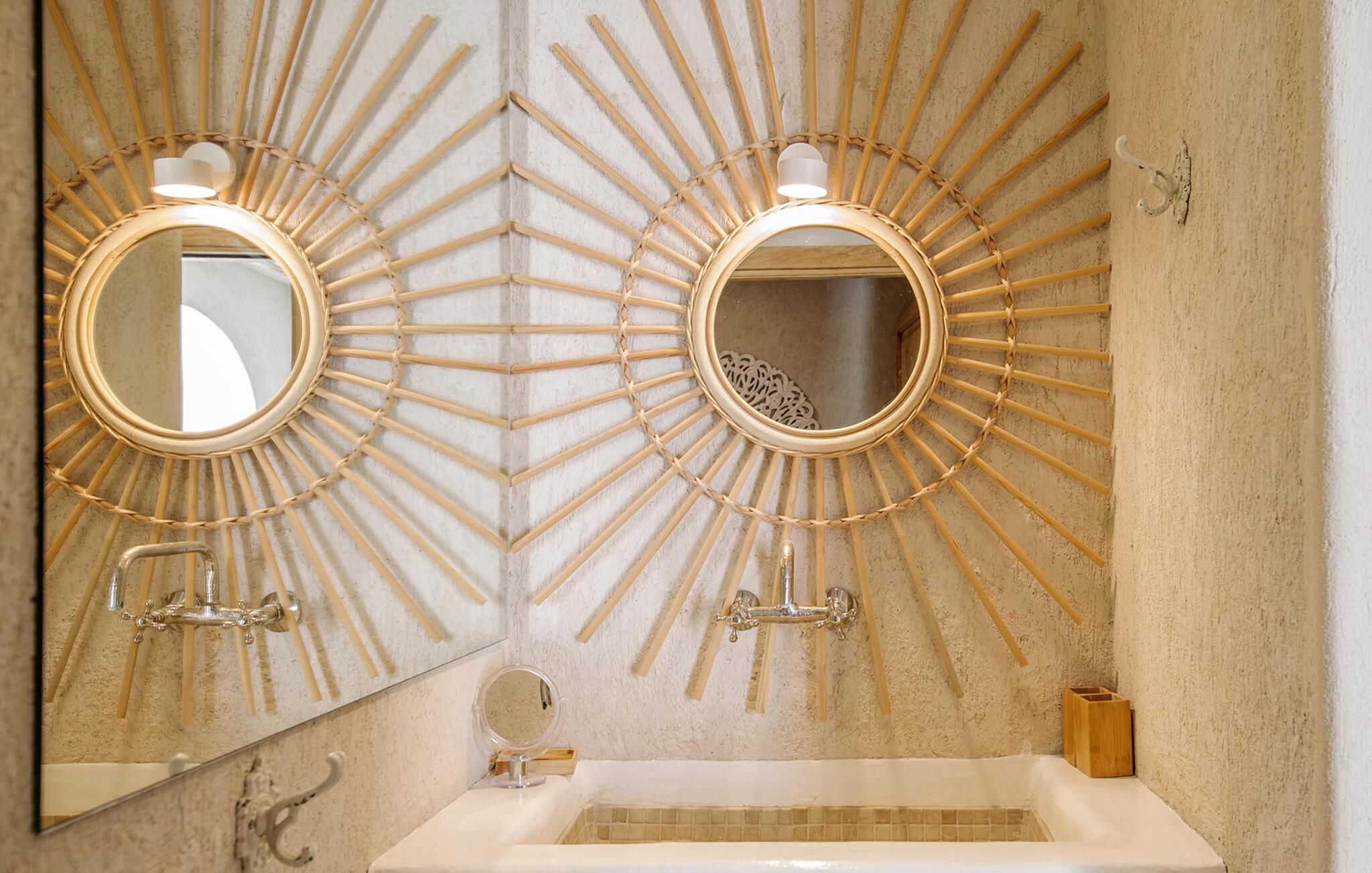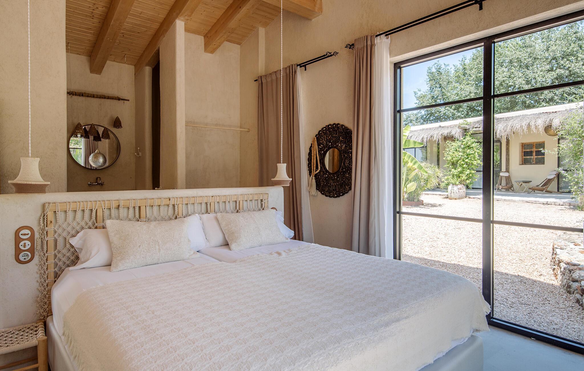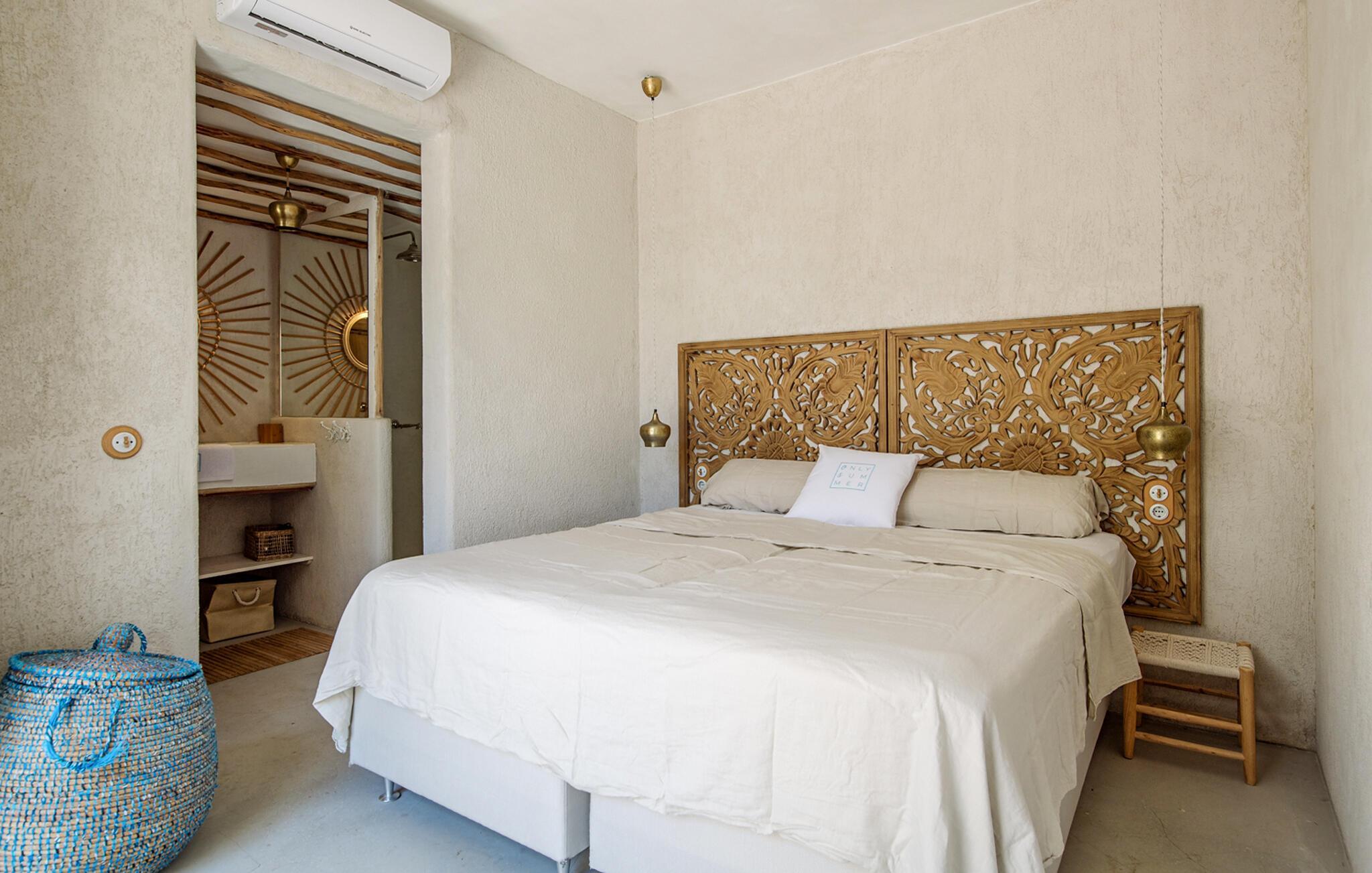 Auch von innen präsentiert sich „Only Summer“ mit viel Stil: „Schöner Wohnen“ lässt grüßen! Auf einer Ebene finden Sie vier schicke Schlafzimmer mit Bädern en Suite, den großzügigen Wohn- und Essbereich, die mit hochwertigen Geräten ausgestattete Küche und ein Gäste-WC. Alles ist wunderbar harmonisch und verspielt romantisch eingerichtet: Sanfte Naturfarben, rustikale Putzwände und Holzelemente verbreiten ein entspanntes, ländliches Flair und schicke Wohnaccessoires wie geflochtene Lampenschirme, bunte Vasen, gemütliche Sitzpoufs, silberfarbene Teller und Kerzenständer, stimmungsvolle Laternen, Teppiche, Kissen und Decken mit glitzernden Pailletten sowie Spiegel sorgen für eine große Portion Bohemian-Flair. Es sind die liebevoll ausgewählten Details in allen Räumen, die dieses Haus so besonders machen Umgeben von wunderschönen bunten Samtsesseln hat eines der Betten eine kunstvoll geschnitzte Rückwand, während ein weiteres Schlafzimmer ganz in Weiß gehalten ist, mit einer gemauerten Bank und einem luftigen Himmel über dem einfachen Doppelbett. Auch die Waschbecken in den Badezimmern sind teilweise gemauert und grob verputzt, gekonnt kombiniert entweder mit modernen schwarzen Armaturen oder mit einer nostalgisch anmutenden Armatur. Freuen Sie sich auf folgende inklusiven Leistungen: Champagnerempfang, Flughafentransfer, exklusive Mietwagen, unbegrenzte Reinigung, Concierge-Service, Einkaufsservice, luxuriöse Badezimmerartikel, kontinentales Frühstück, Fahrradverleih.
