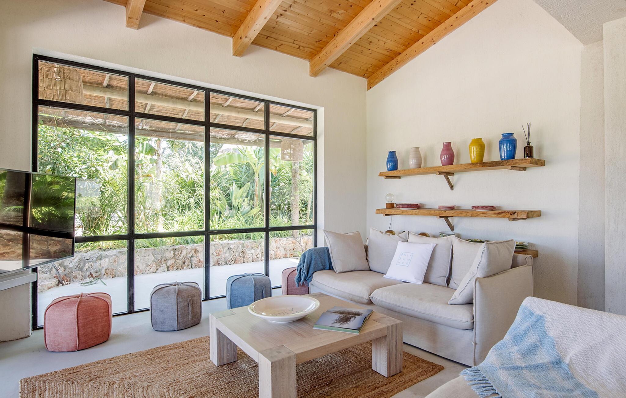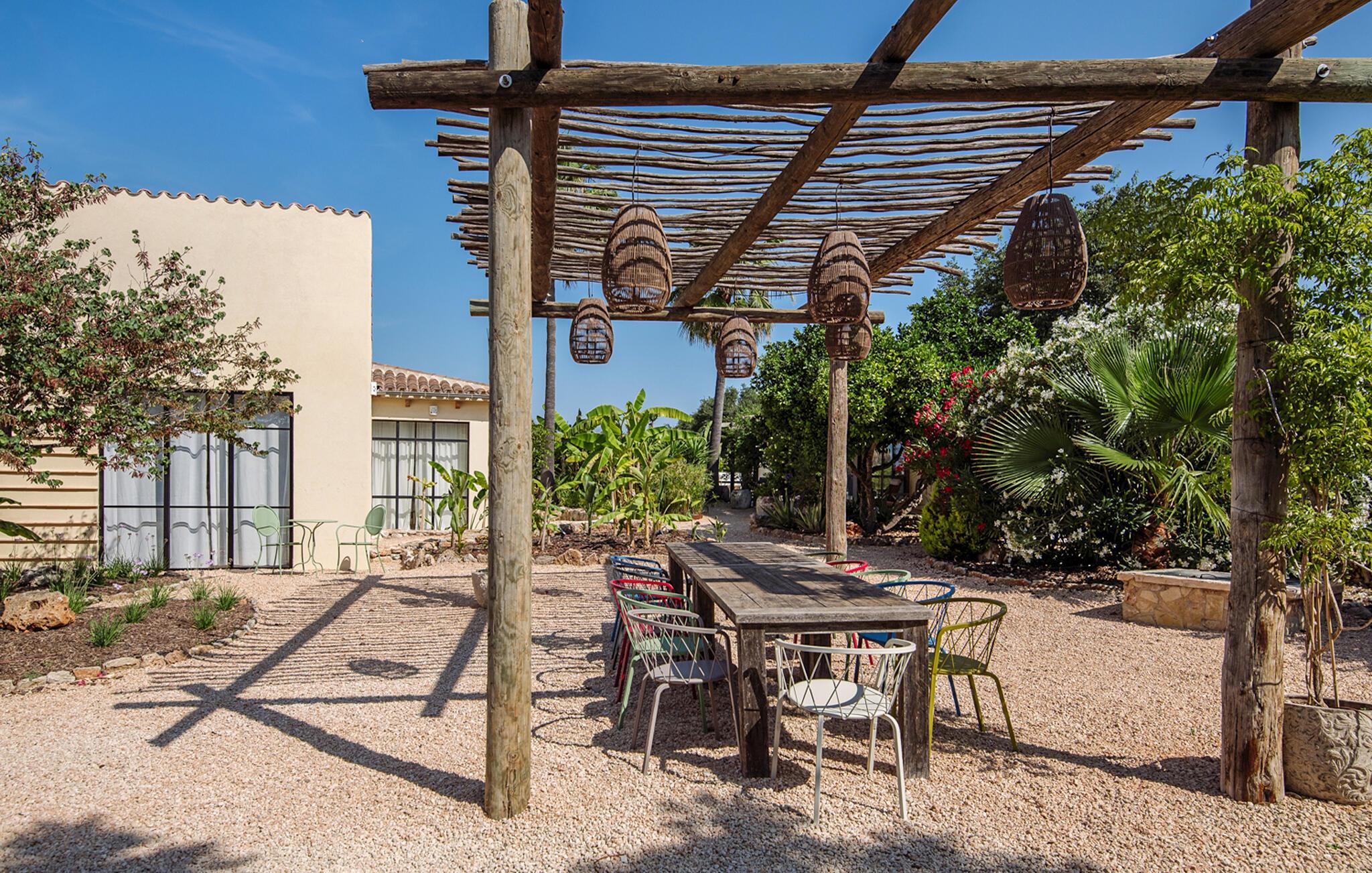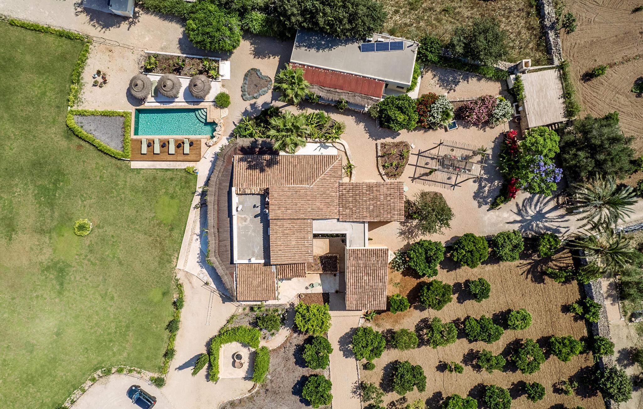 Ein Finca-Traum, der direkt einem Hochglanz-Designmagazin entsprungen zu sein scheint: „Only Summer“ macht seinem sommerlichen Namen alle Ehre. Das ursprünglich traditionell gebaute Haus wurde aufwendig und stilvoll renoviert und erstrahlt nun in jeder Hinsicht in neuem Glanz: Weiß getünchte Wände bilden einen schönen Kontrast zu den großen schwarzen Fensterrahmen, die überall das einzigartige mediterrane Licht hereinlassen. Die hölzerne Pergola rund um das Haus spendet nicht nur Schatten, sondern harmoniert auch perfekt mit den hübschen rustikalen Dachziegeln. Das riesige Grundstück bietet alles, was das Urlauberherz begehrt – und noch ein bisschen mehr. Denn wo sonst findet man neben einer fantastisch ausgestatteten Außenküche, stilvollen Sitzgelegenheiten inmitten eines liebevoll angelegten Gartens mit duftenden Kräutern und einem Pool auch einen eigenen Obstgarten? Diese von Palmen und Olivenbäumen umgebene Finca werden Sie während Ihres Urlaubs so gut wie nie verlassen müssen – denn mehr Komfort, gepaart mit einer absolut geschmackvollen und charmanten Atmosphäre zum Wohlfühlen und Beschäftigungsmöglichkeiten geht wirklich nicht! Die Gastgeber stehen Ihnen rund um die Uhr zur Verfügung und sind bei Bedarf schnell vor Ort.