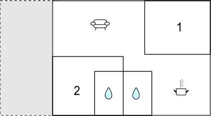 Badezimmer (nr. 1) - WC. Warmes und kaltes Wasser. Dusche