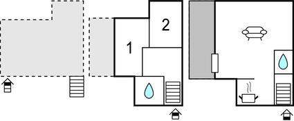 Badezimmer (nr. 1) - WC. Warmes und kaltes Wasser. Dusche