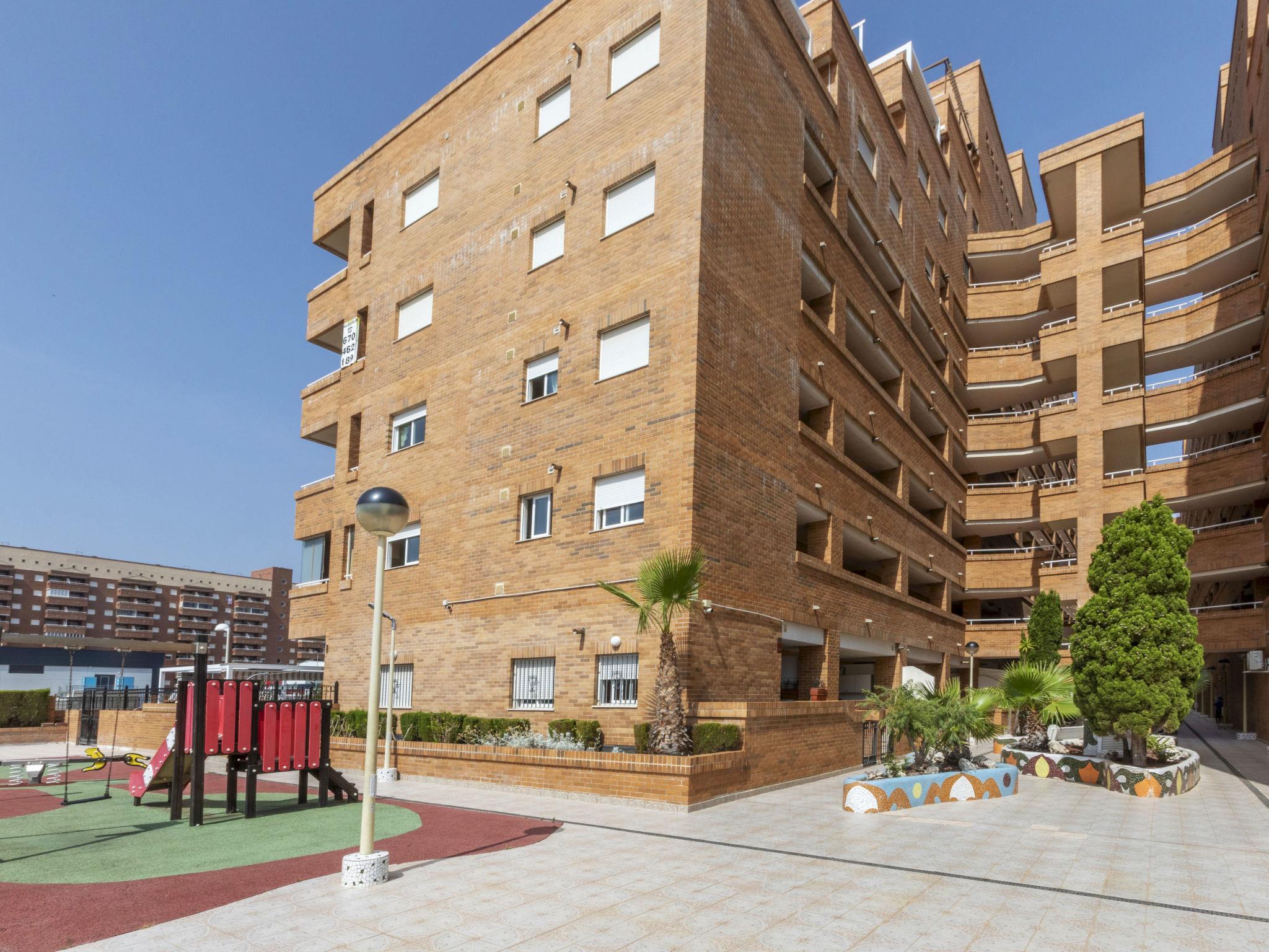 Magic World: Large apartment block "Torremar". In the centre of Magic World, in a central, sunny position, 300 m from the sea, 250 m from the beach. For shared use: garden, swimming pool (20 x 10 m, depth 70 - 240 cm, seasonal availability: 01.Jun. - 30.Sep.). Children's pool, outdoor shower, children's playground (slide, swing). In the house: lift. Roofed, parking at the house, public parking on the road. Parking space or garage only for small to medium-sized cars. Supermarket 100 m, restaurant 200 m, bus stop 100 m, railway station "Oropesa de Mar" 3 km, sandy beach 250 m. Children's playground 200 m. Nearby attractions: Jardín Encantado 500 m. Please note: entertainment in the season. Suitable for families. Groups of teenagers on request only. Neighbourhood highly sensitive to noise. Quietness and good behaviour expected.