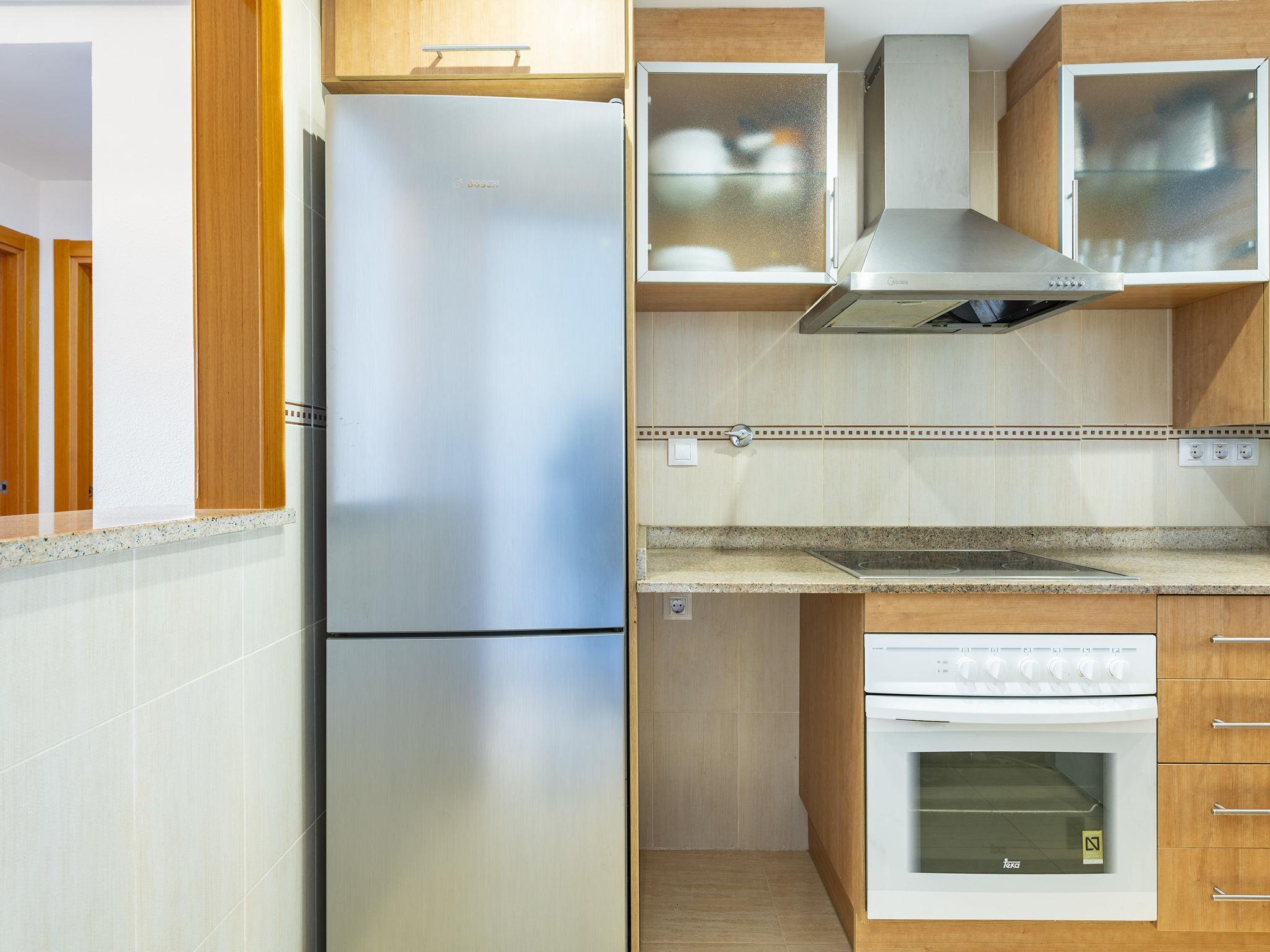 "Costa Azahar II", 3-room apartment 60 m2. Living/dining room with digital TV, flat screen, air conditioning and forced-air heating. Exit to the terrace. 1 double bedroom with 2 beds (80 cm, length 190 cm). 1 room with 1 french bed (135 cm, length 190 cm). Kitchen (4 ceramic glass hob hotplates, toaster, kettle, microwave, freezer, grill, electric coffee machine, Capsules for coffee machine (Nespresso)) with hatch. Shower/bidet/WC. Heating not available in all rooms. Terrace. Terrace furniture. Facilities: washing machine, iron, hair dryer. Internet (WiFi, free). Parking space n 178 at the house. Please note: suitable for families. Non-smokers only. VT-44654-CS // Reg. Nr.: ESFCTU00001202600054231400000000000000000VT-44654-CS1