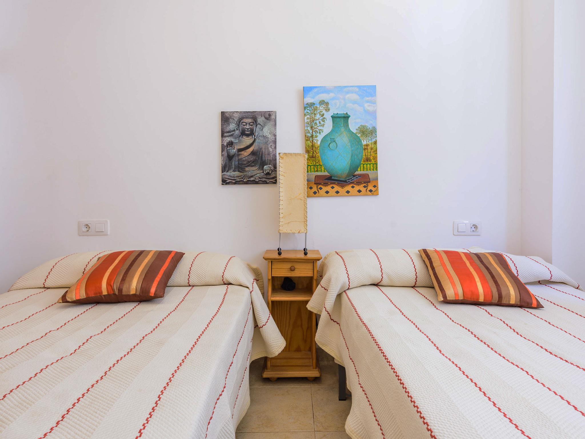 "Las Terrazas II", 2-room apartment 91 m2. Antique furnishings: living/dining room with digital TV, air conditioning and forced-air heating. Exit to the terrace. 1 room with 1 bed (90 cm, length 170 cm), 1 french bed (150 cm, length 190 cm), digital TV. Kitchen (oven, dishwasher, 4 ceramic glass hob hotplates, toaster, kettle, microwave, electric coffee machine). Shower/WC. Small terrace. Terrace furniture. View of the resort. Facilities: washing machine, iron, children's high chair, hair dryer. Internet (WiFi, free). Parking space n 37 (roofed). Please note: non-smokers only. TV only ES. VT-44652-CS