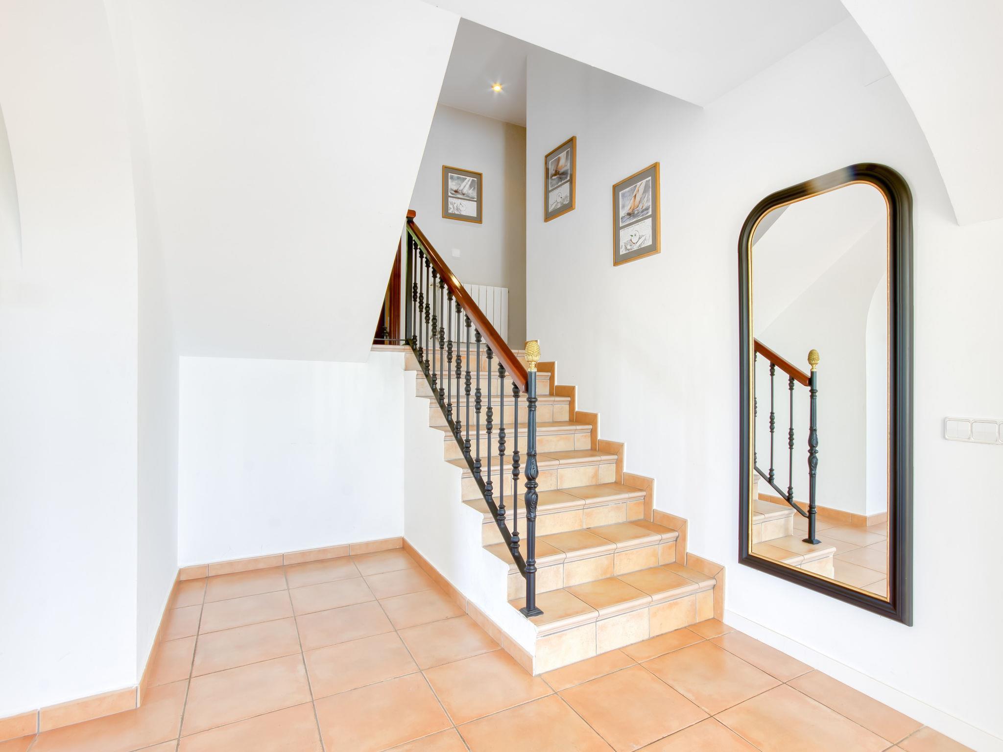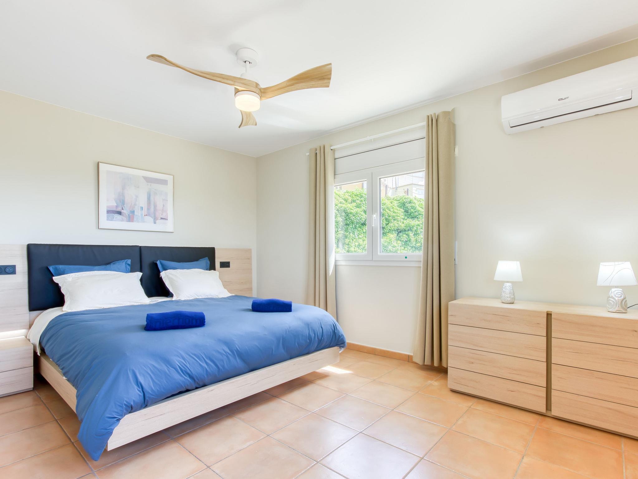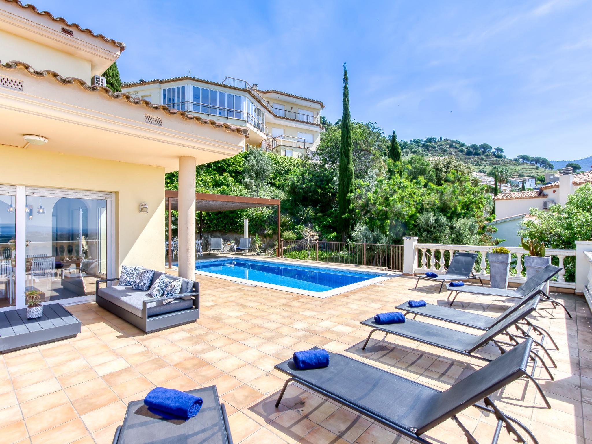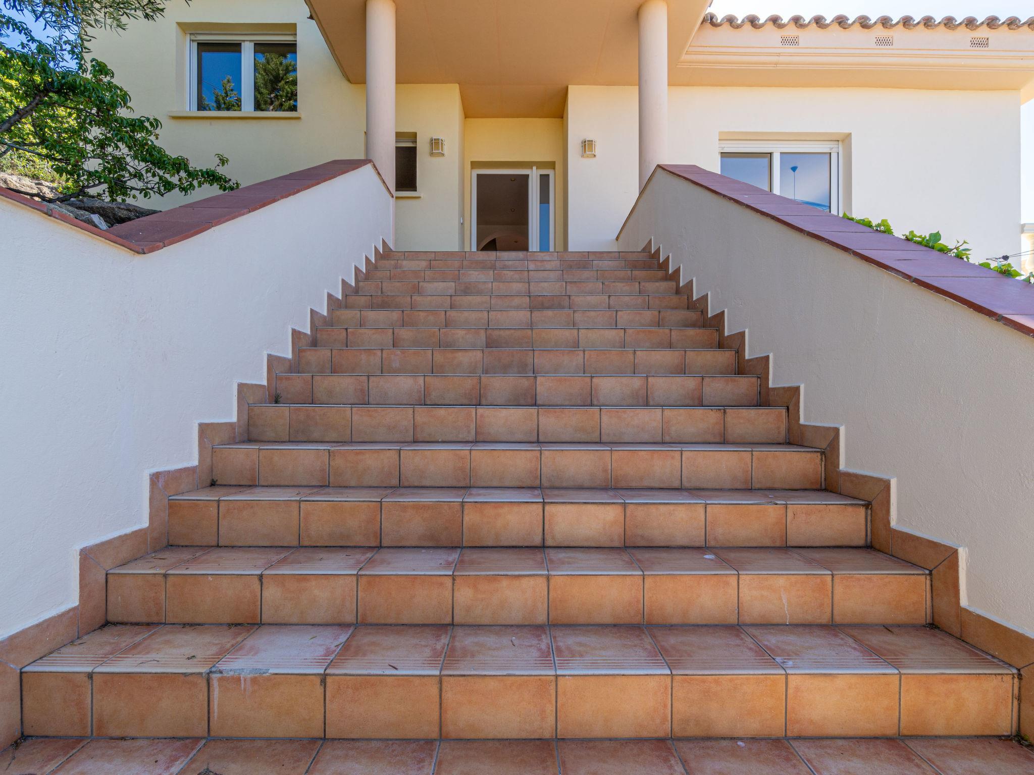 6-room villa 318 m2 on 4 levels. Spacious and bright, modern and stylish furnishings: living/dining room with dining table, satellite TV and digital TV (flat screen). Exit to the terrace, to the swimming pool. Large, open kitchen (oven, dishwasher, 3 induction hot plates, toaster, kettle, microwave, freezer, electric coffee machine). Sep. WC. On the lower ground floor: (exterior staircase) living/dining room with fan. Exit to the terrace. 1 room with 1 french bed (160 cm, length 190 cm), air conditioning, fan and forced-air heating. 1 room with 2 beds (90 cm, length 190 cm), fan. Kitchenette (kettle, microwave). Shower, sep. WC. Upper floor: 1 room with 2 beds (90 cm, length 190 cm), air conditioning, fan and forced-air heating. 1 room with 1 french bed (160 cm, length 190 cm), air conditioning, fan and forced-air heating. Bath/shower/WC. 2nd upper floor: 1 large room with 1 french bed (180 cm, length 190 cm), shower/WC, air conditioning, fan and forced-air heating. Exit to the terrace. Large terrace. Terrace furniture, barbecue, deck chairs. Marvellous panoramic view of the sea and the mountains. Facilities: washing machine, iron, hair dryer. Internet (WiFi, free). Parking at the house. Please note: non-smoking house. TV only FR, DE, ES. No lift. The rooms on the lower floor belong to a separate apartment. HUTG-010952 // Reg. Nr.: ESFCTU00001700800055768500000000000000000HUTG-0109528
